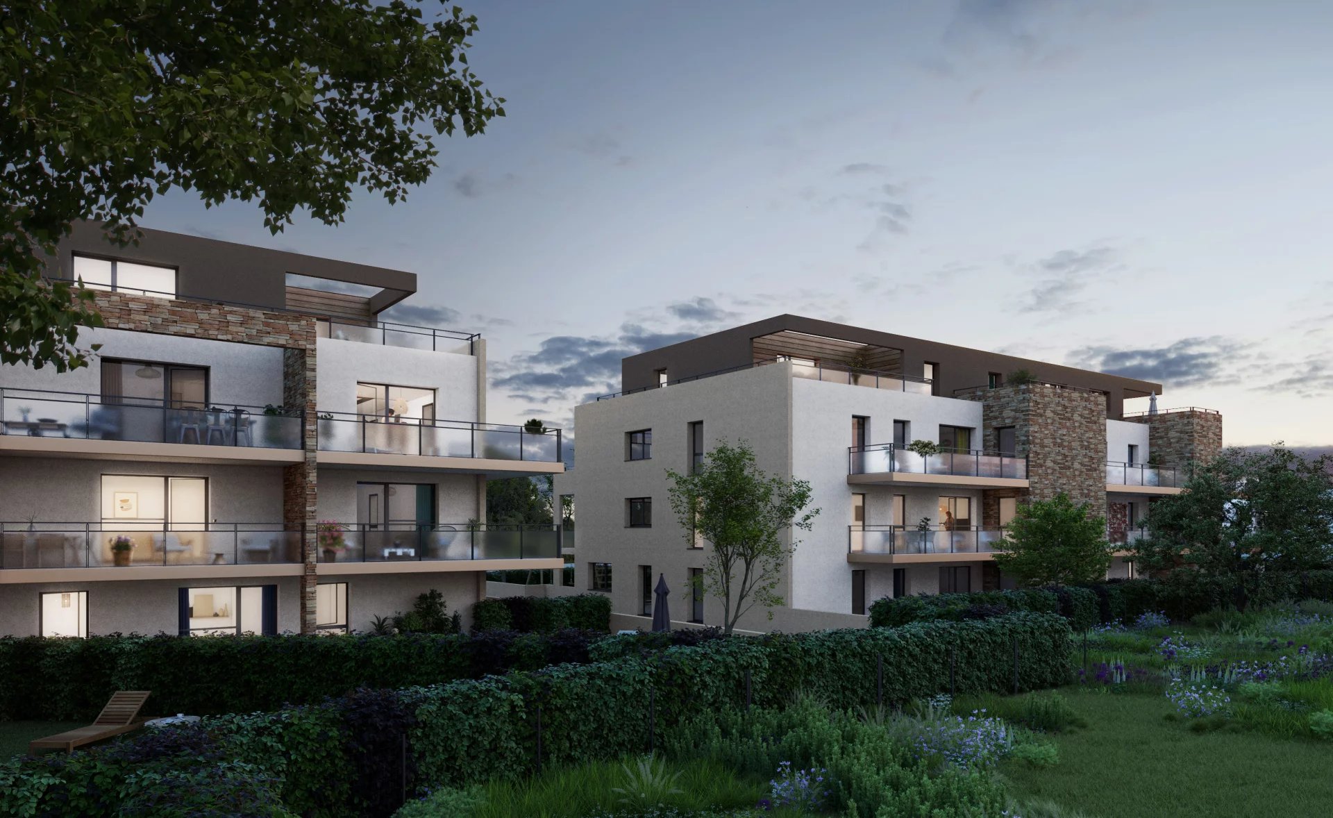 Chaque lot s’accompagne à minima d’un garage, d’un balcon ou d’une terrasse ainsi que d’un grand cellier. S’ajoute également aux plus grands lots une place de parking supplémentaire.