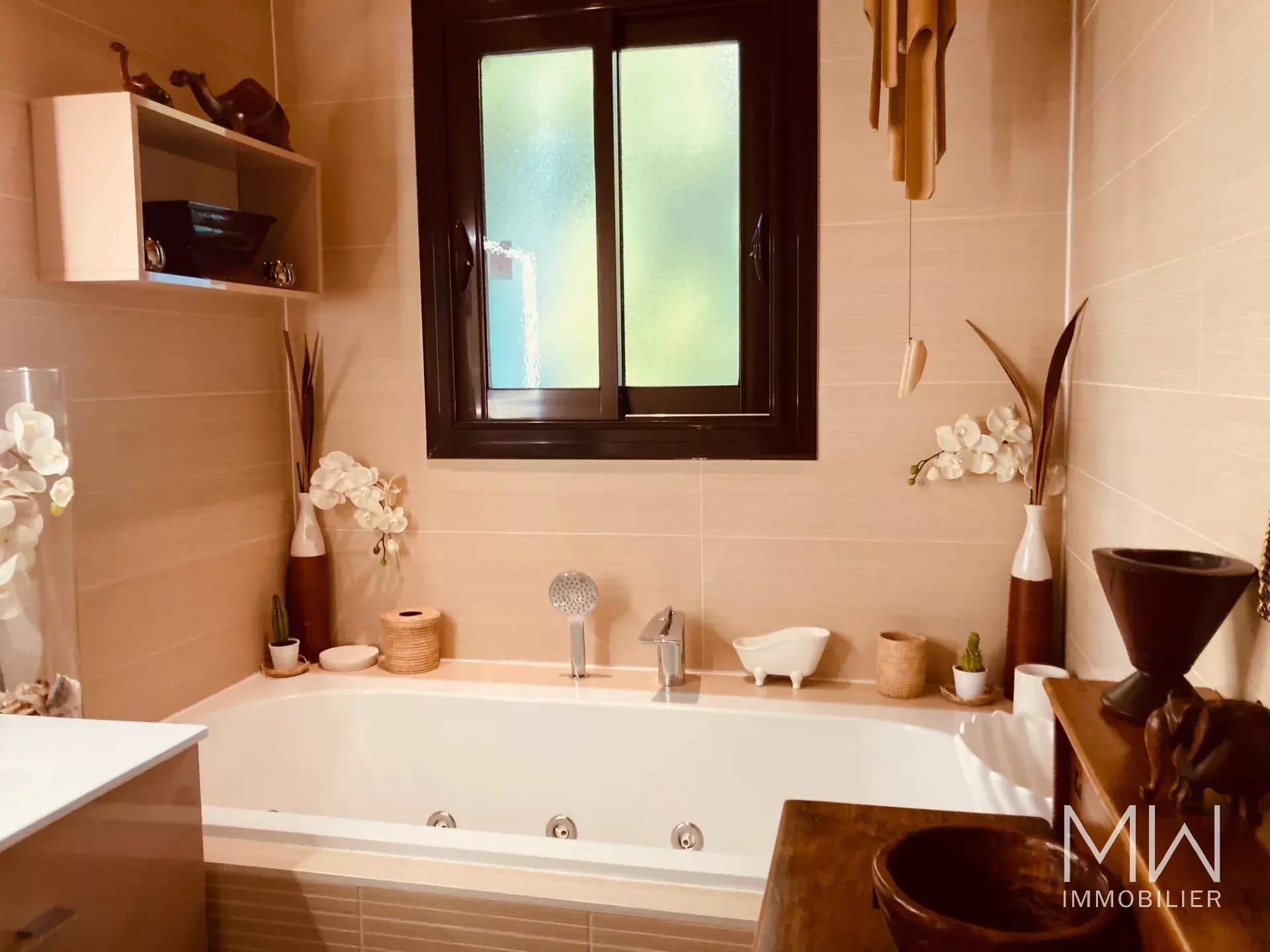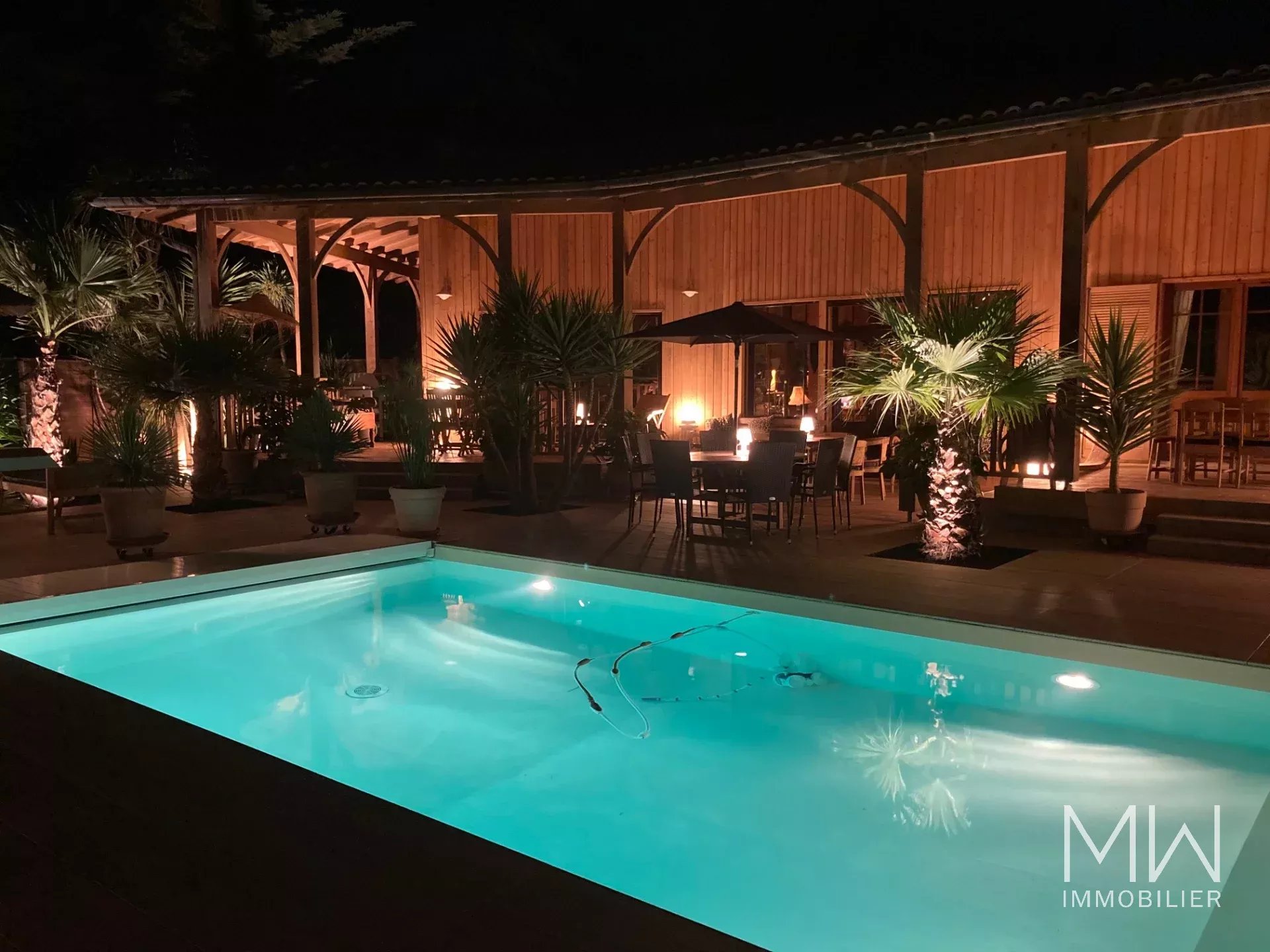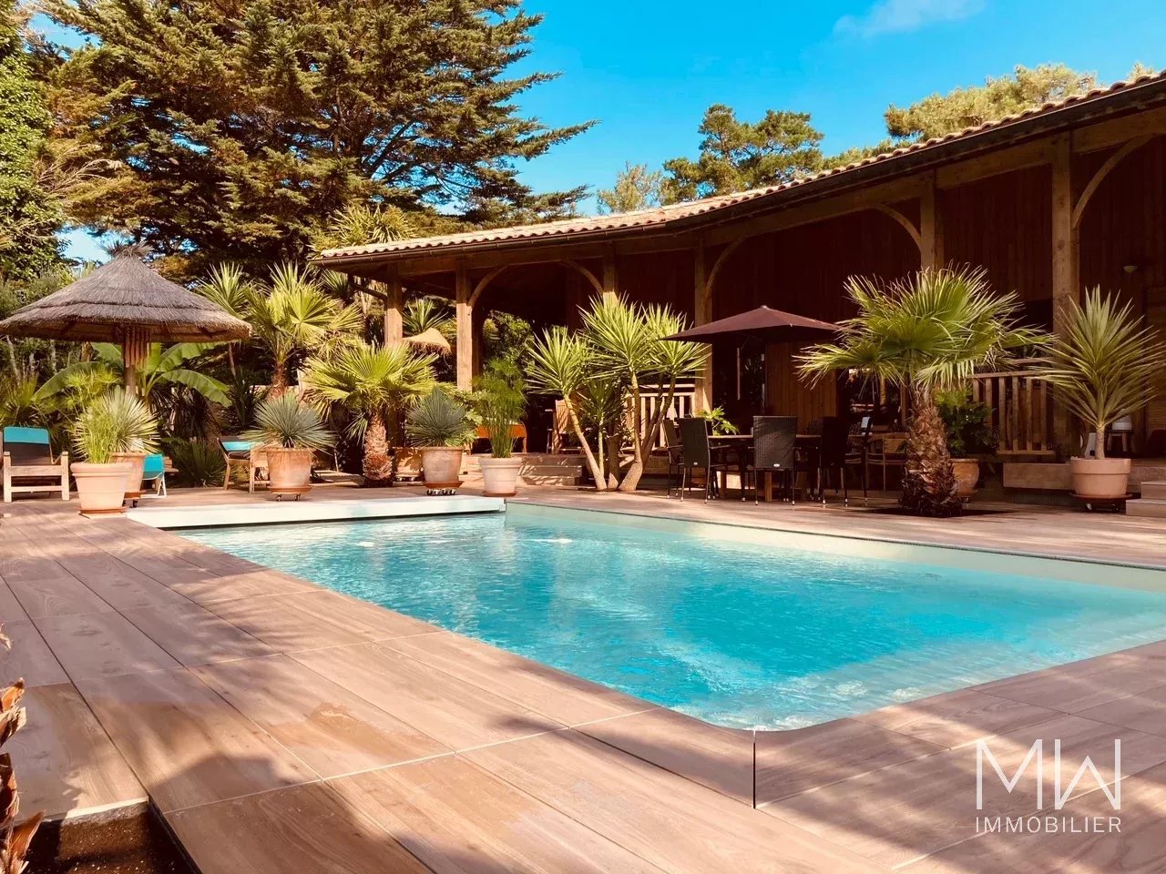 La piscine (4x9m, chauffée et traitée au sel), entourée d'une grande terrasse, avec son gazebo attenant, et le jardin tropical participent au confort et à la sensation de sérénité dégagée par le lieu.
