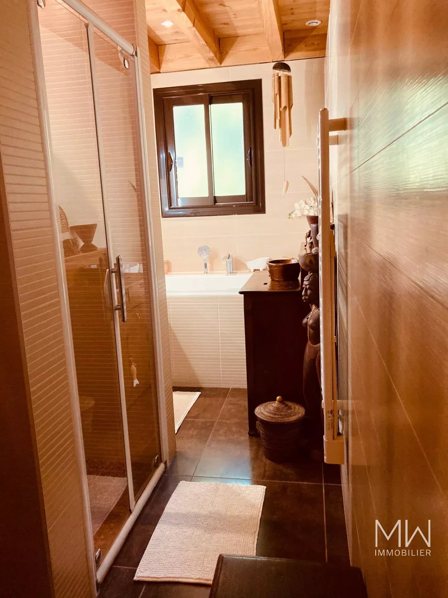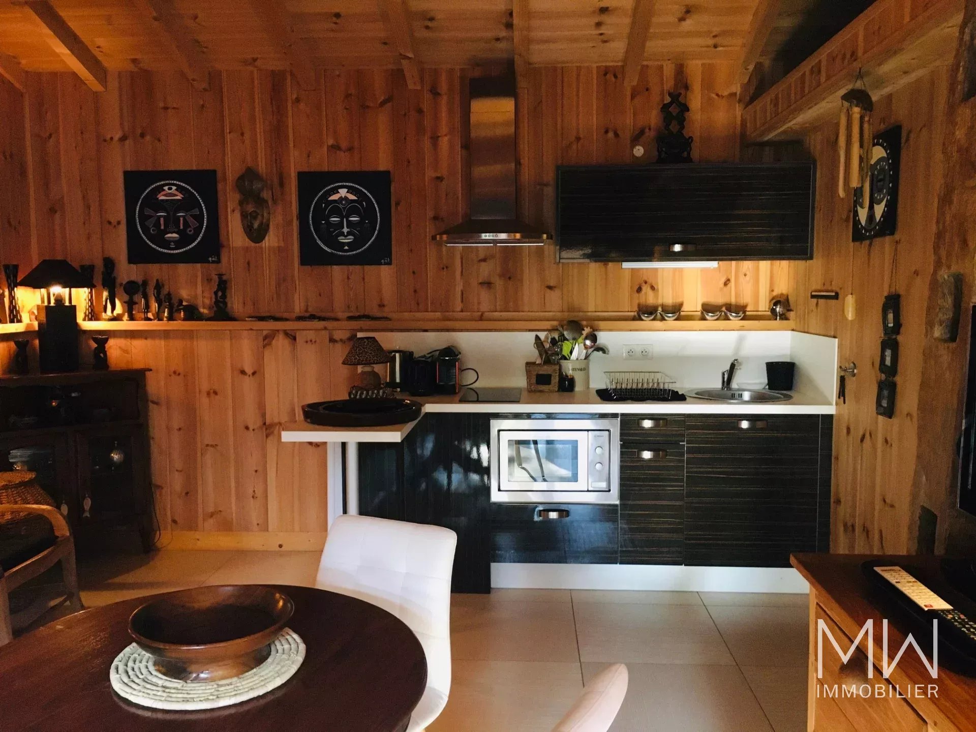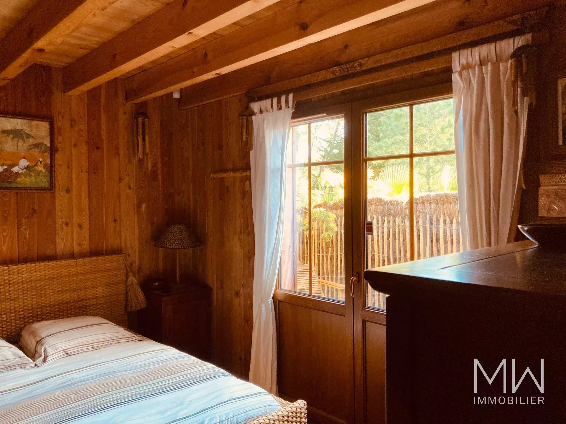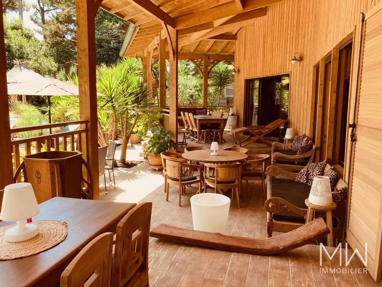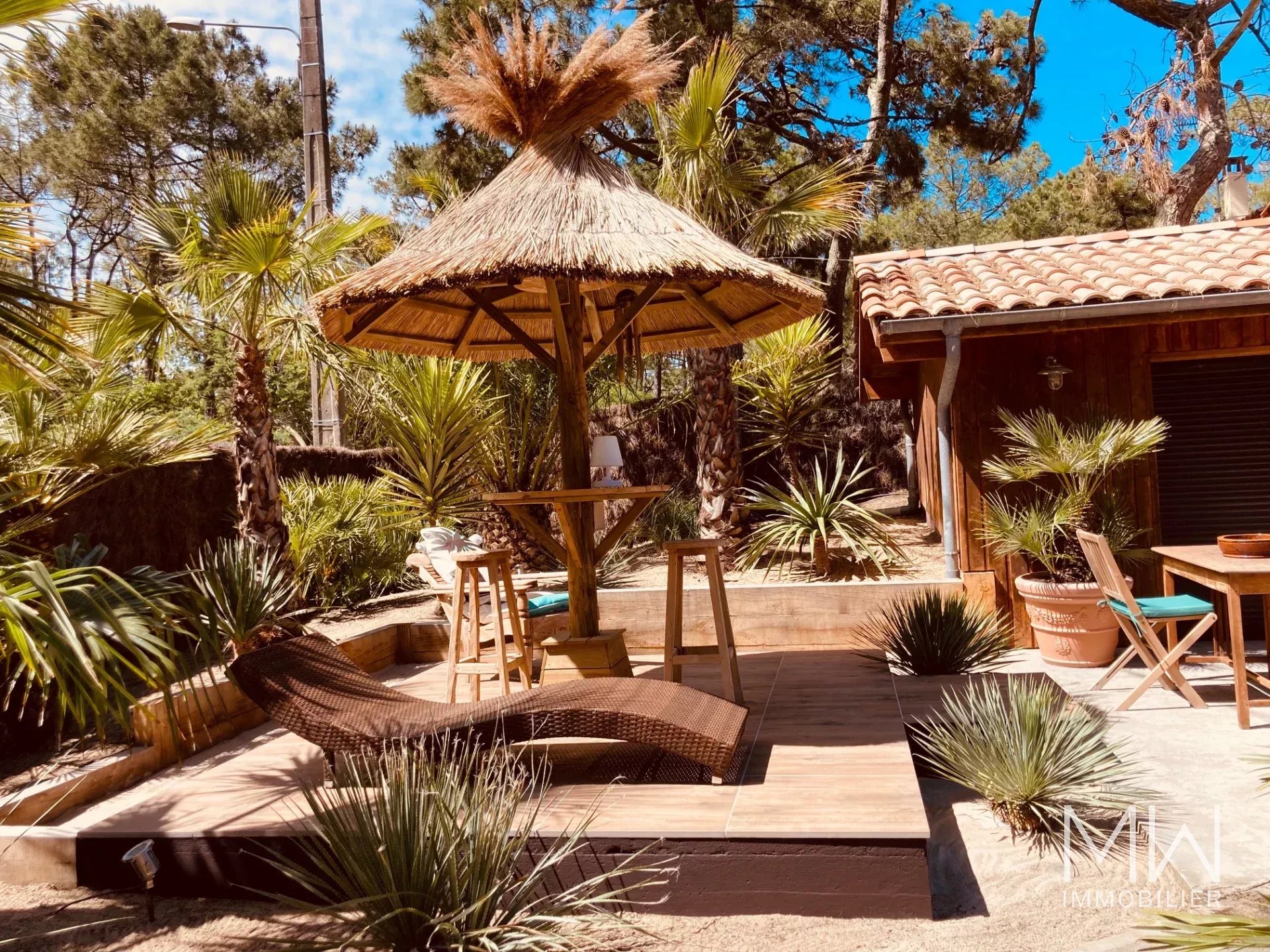 A quelques pas de la plage du Mimbeau et de l'océan, cette villa ossature bois, est un véritable havre de paix avec son parfum d'exotisme.