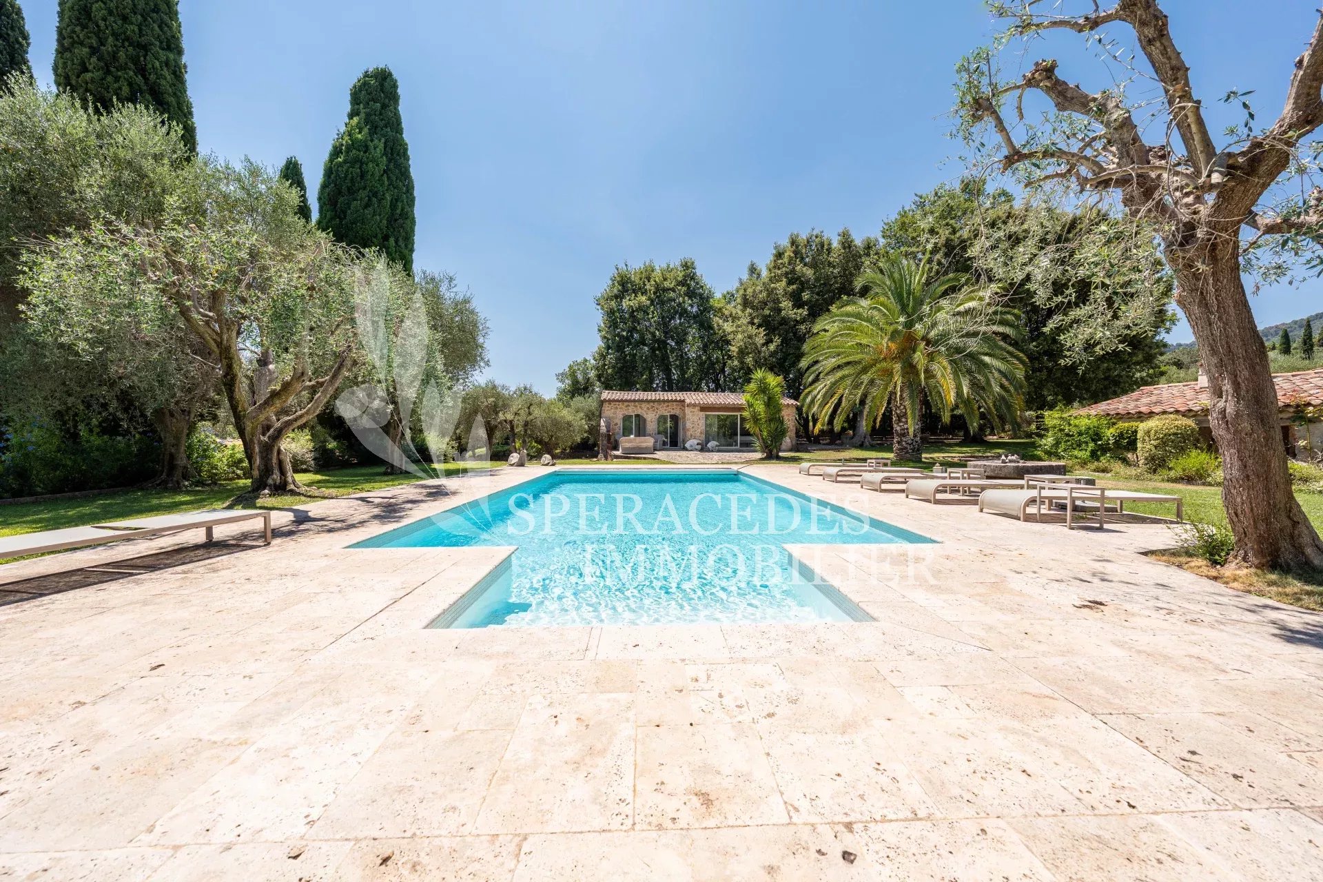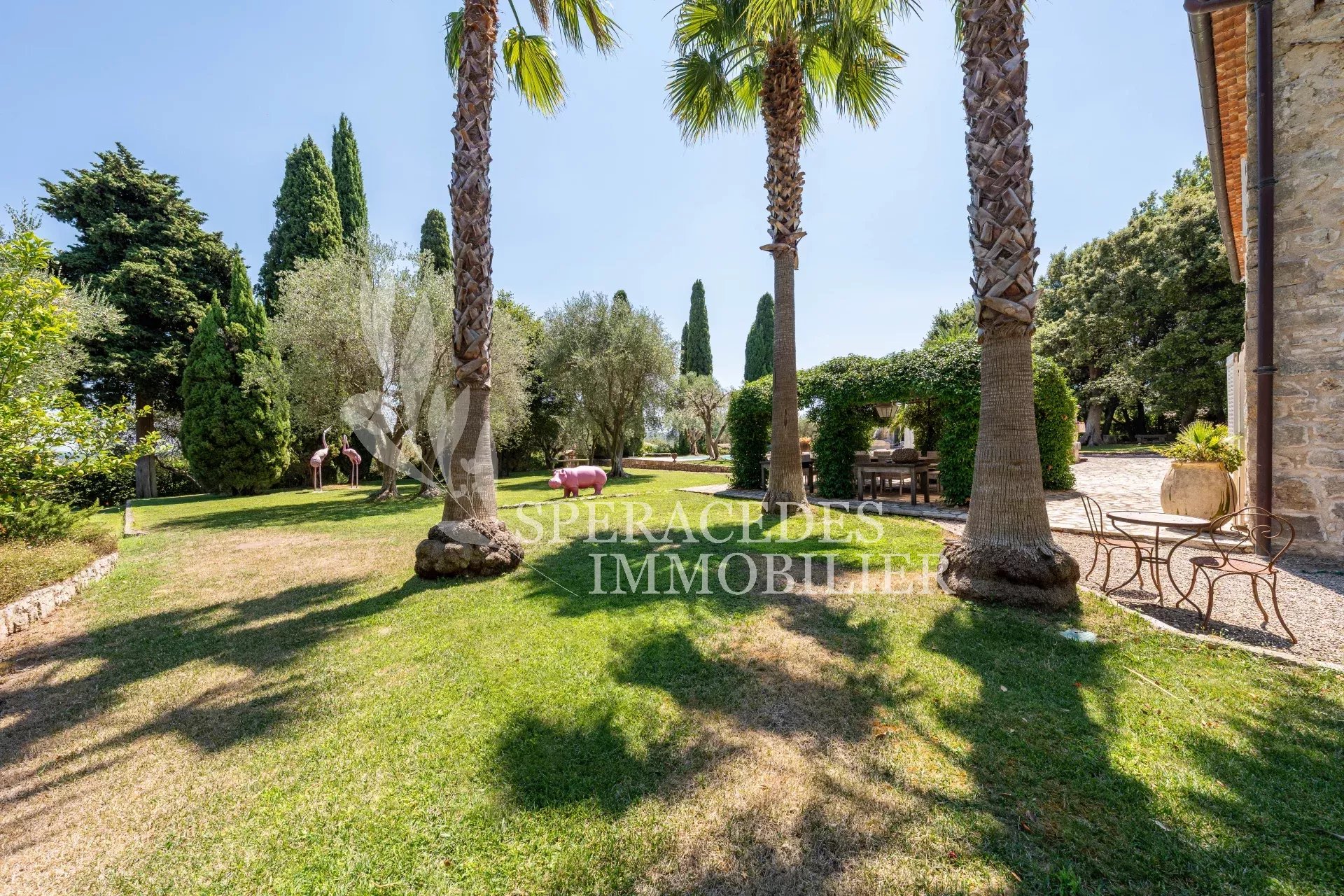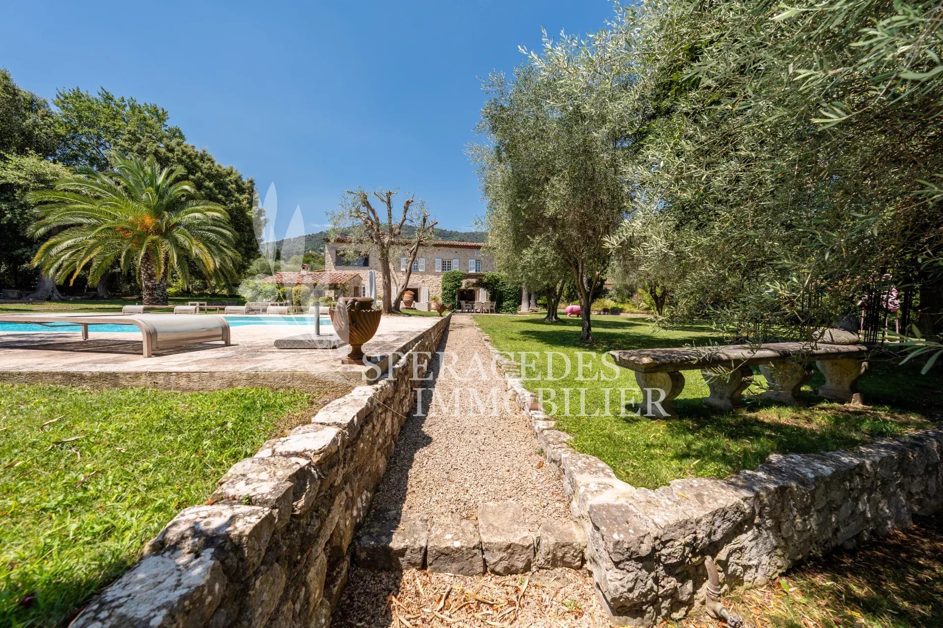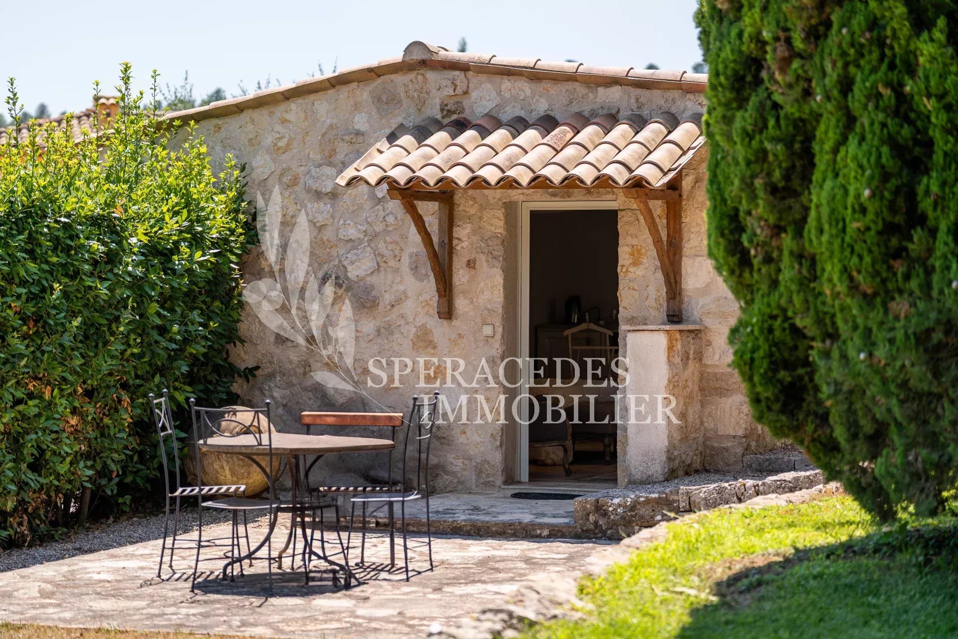 Proche des villages de Spéracèdes et Cabris, nichée au cœur d’un petit domaine privé et sécurisé, cette superbe propriété de caractère, anciennement résidence de l’écrivain Henri Troyat, s’étend sur un magnifique parc paysager de 5 000 m². Elle se compose d’une bastide en pierre rénovée de 250 m², véritable havre de charme, ainsi que de deux dépendances indépendantes de 50 m² chacune, idéales pour recevoir en toute intimité.
