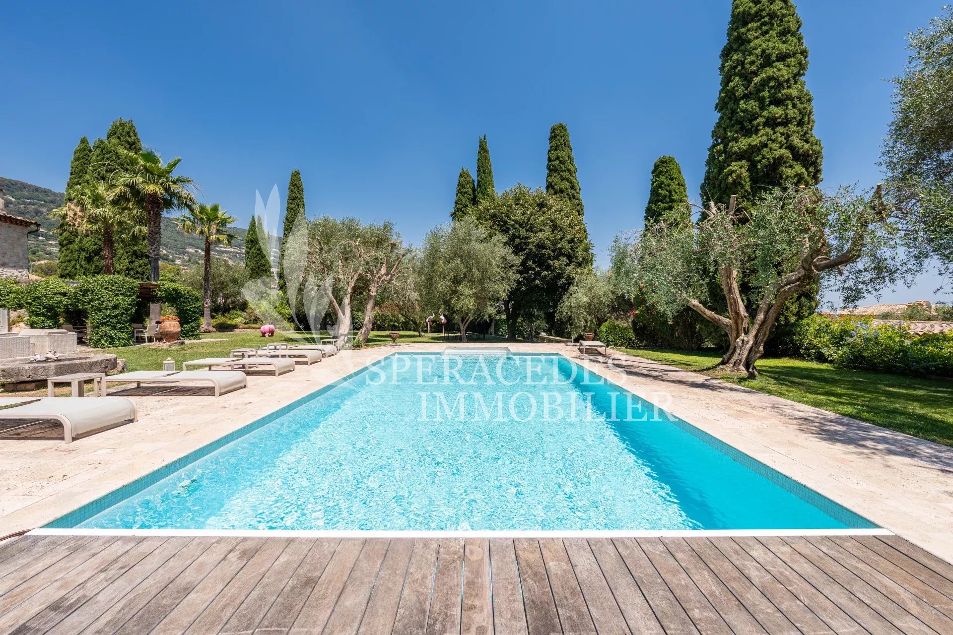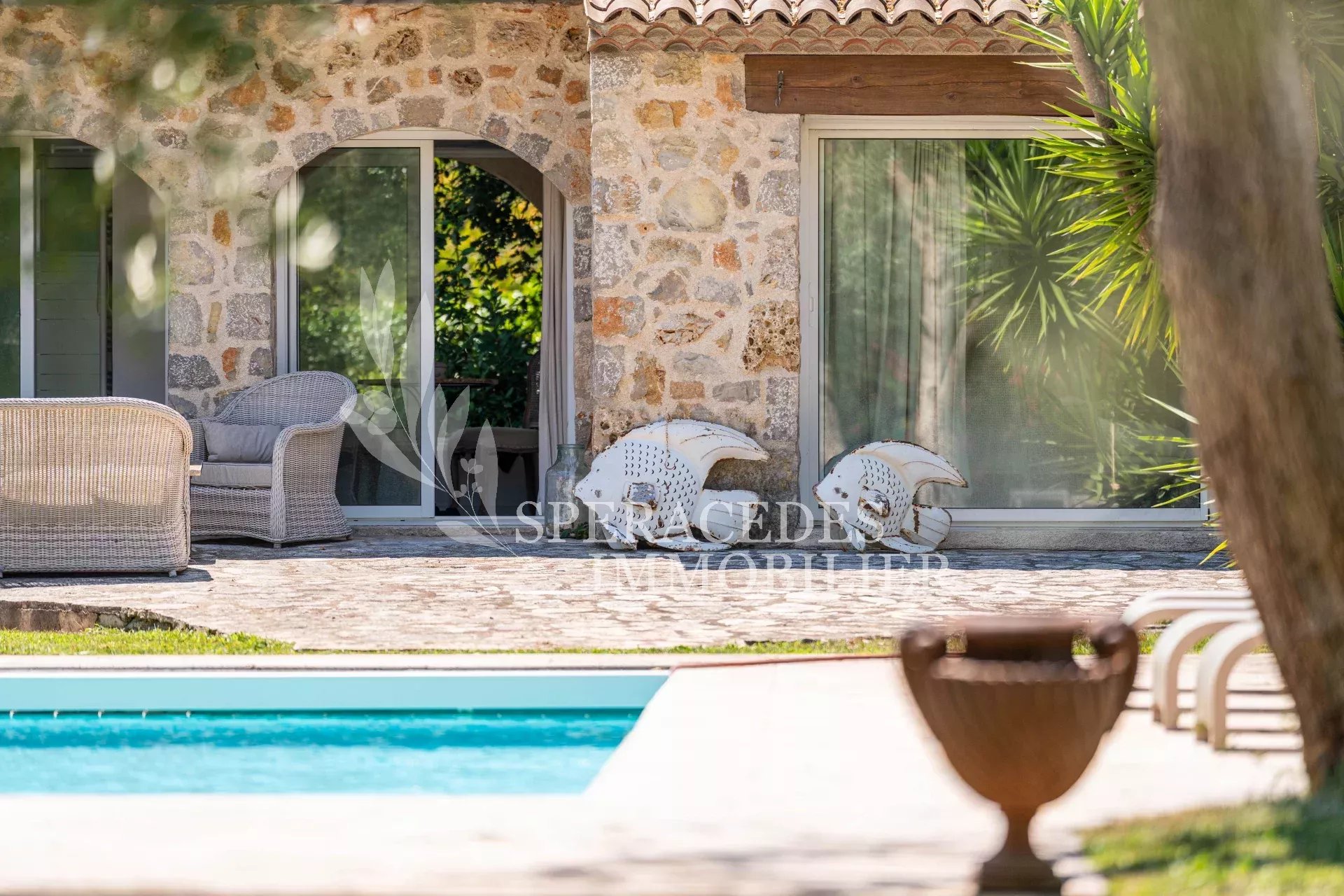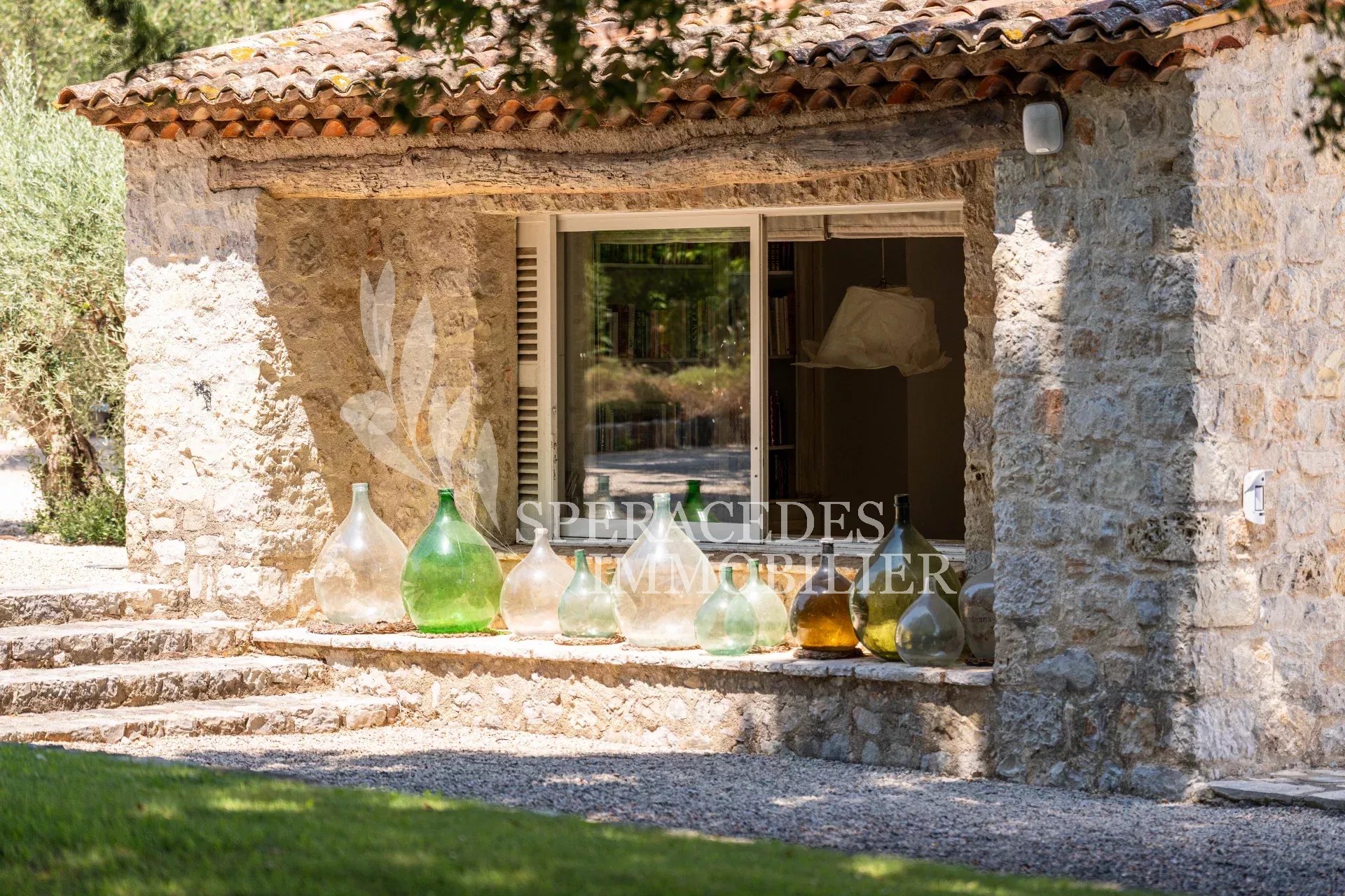 Proche des villages de Spéracèdes et Cabris, nichée au cœur d’un petit domaine privé et sécurisé, cette superbe propriété de caractère, anciennement résidence de l’écrivain Henri Troyat, s’étend sur un magnifique parc paysager de 5 000 m². Elle se compose d’une bastide en pierre rénovée de 250 m², véritable havre de charme, ainsi que de deux dépendances indépendantes de 50 m² chacune, idéales pour recevoir en toute intimité.