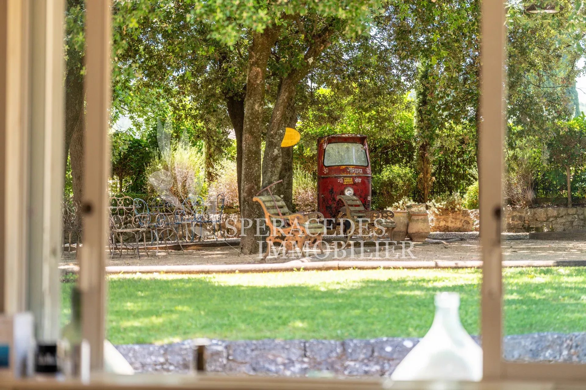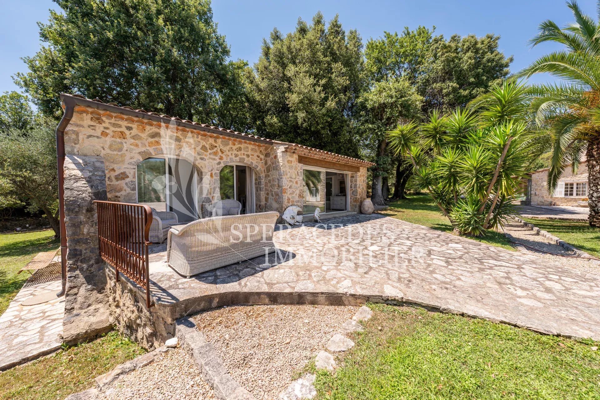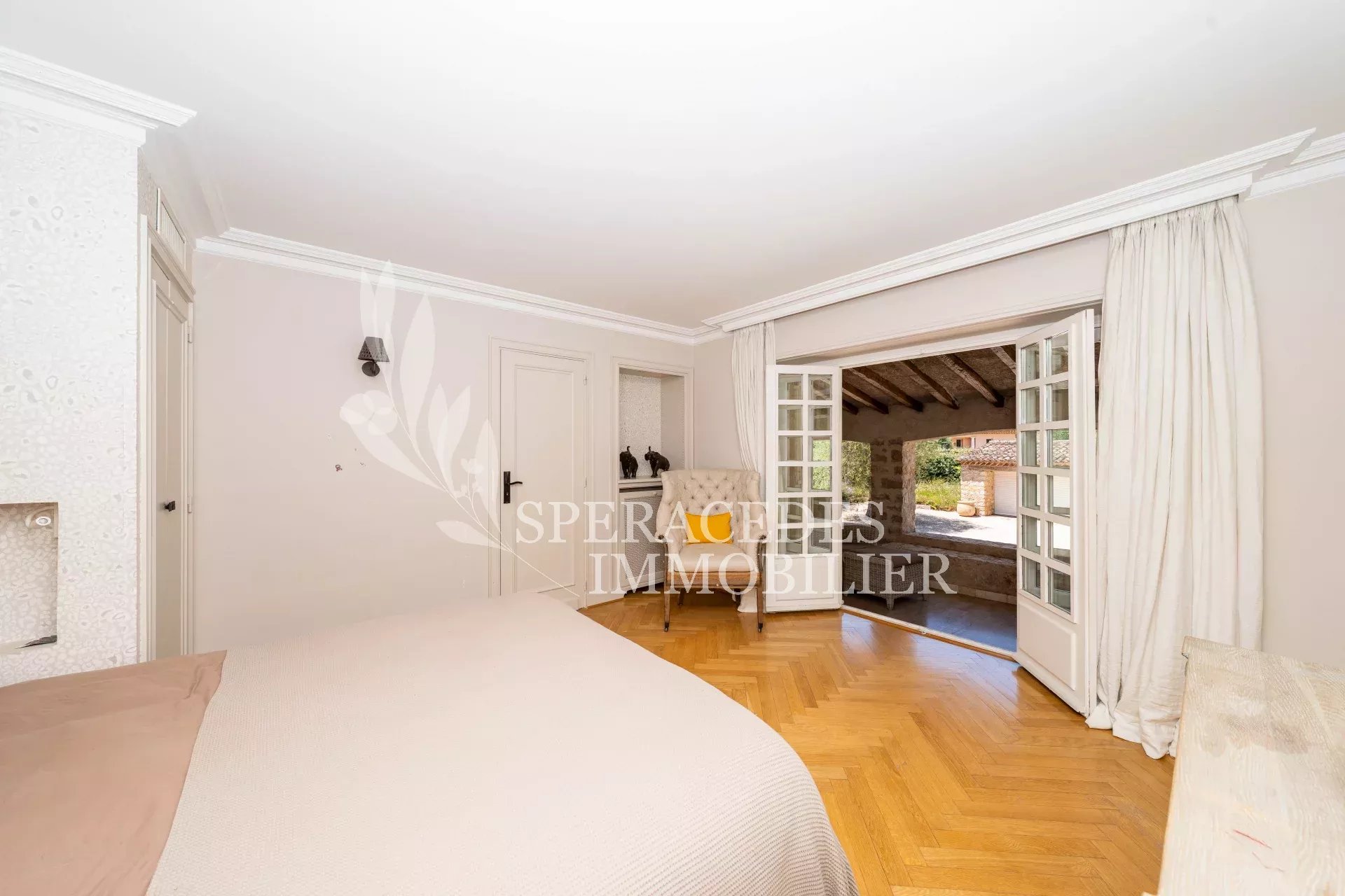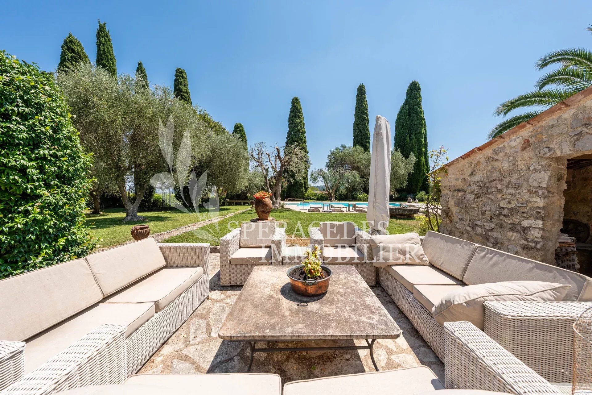 Proche des villages de Spéracèdes et Cabris, nichée au cœur d’un petit domaine privé et sécurisé, cette superbe propriété de caractère, anciennement résidence de l’écrivain Henri Troyat, s’étend sur un magnifique parc paysager de 5 000 m². Elle se compose d’une bastide en pierre rénovée de 250 m², véritable havre de charme, ainsi que de deux dépendances indépendantes de 50 m² chacune, idéales pour recevoir en toute intimité.
