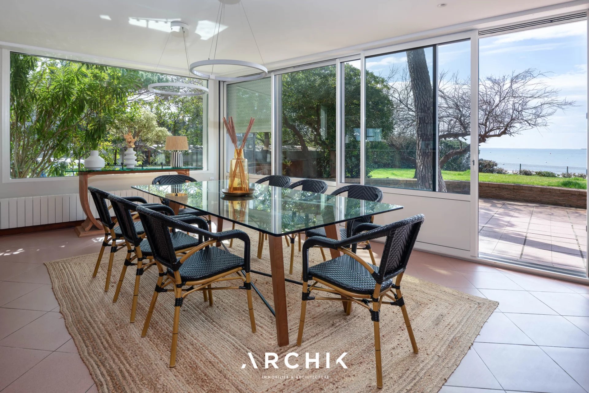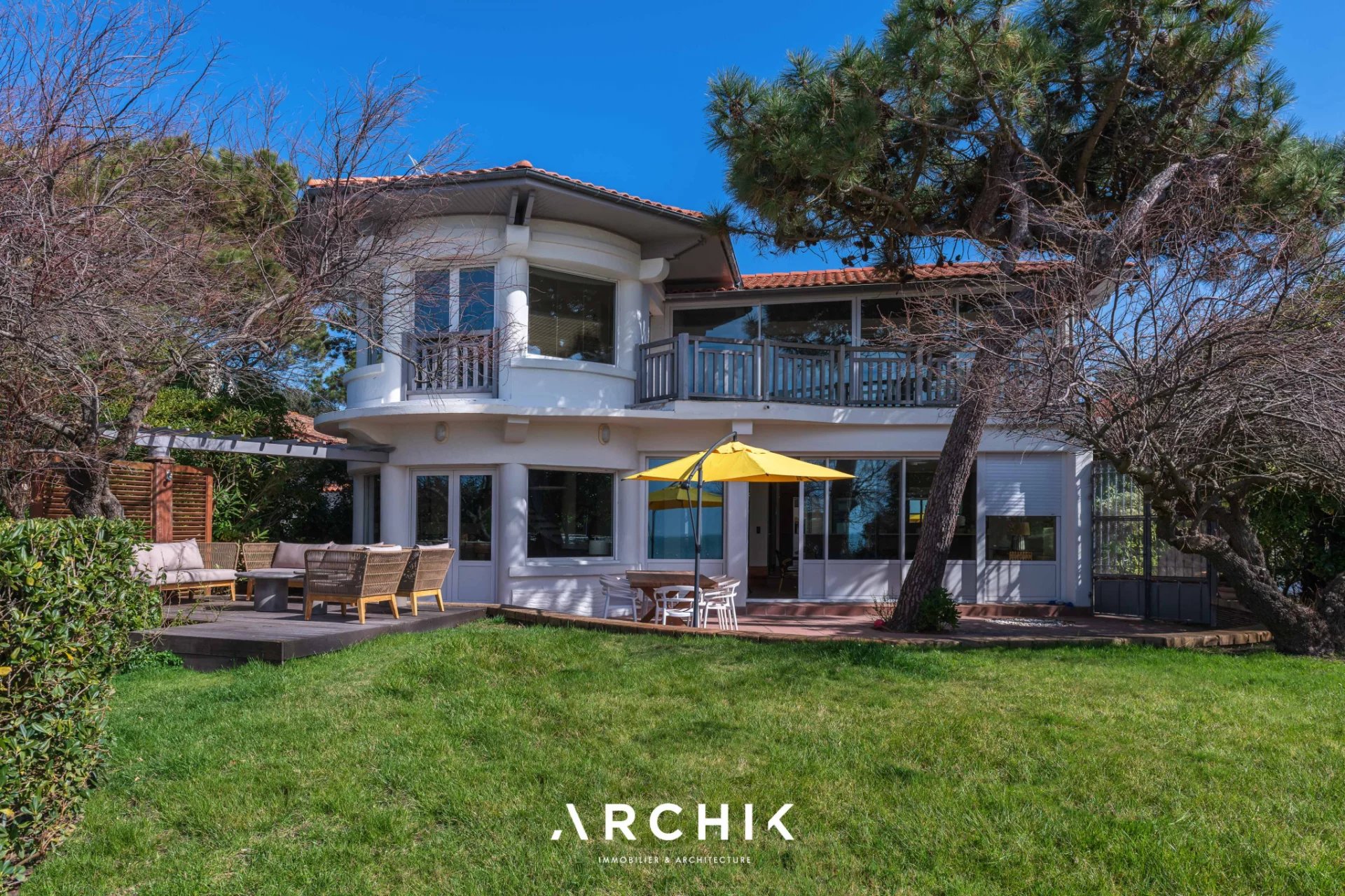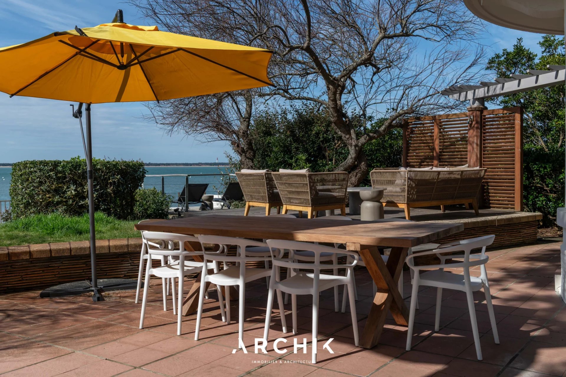 Architecture traditionnelle du Bassin d'Arcachon, cette villa de 170 m2 se positionne en première ligne au bord de l'eau sur un terrain arboré de 770 m2.