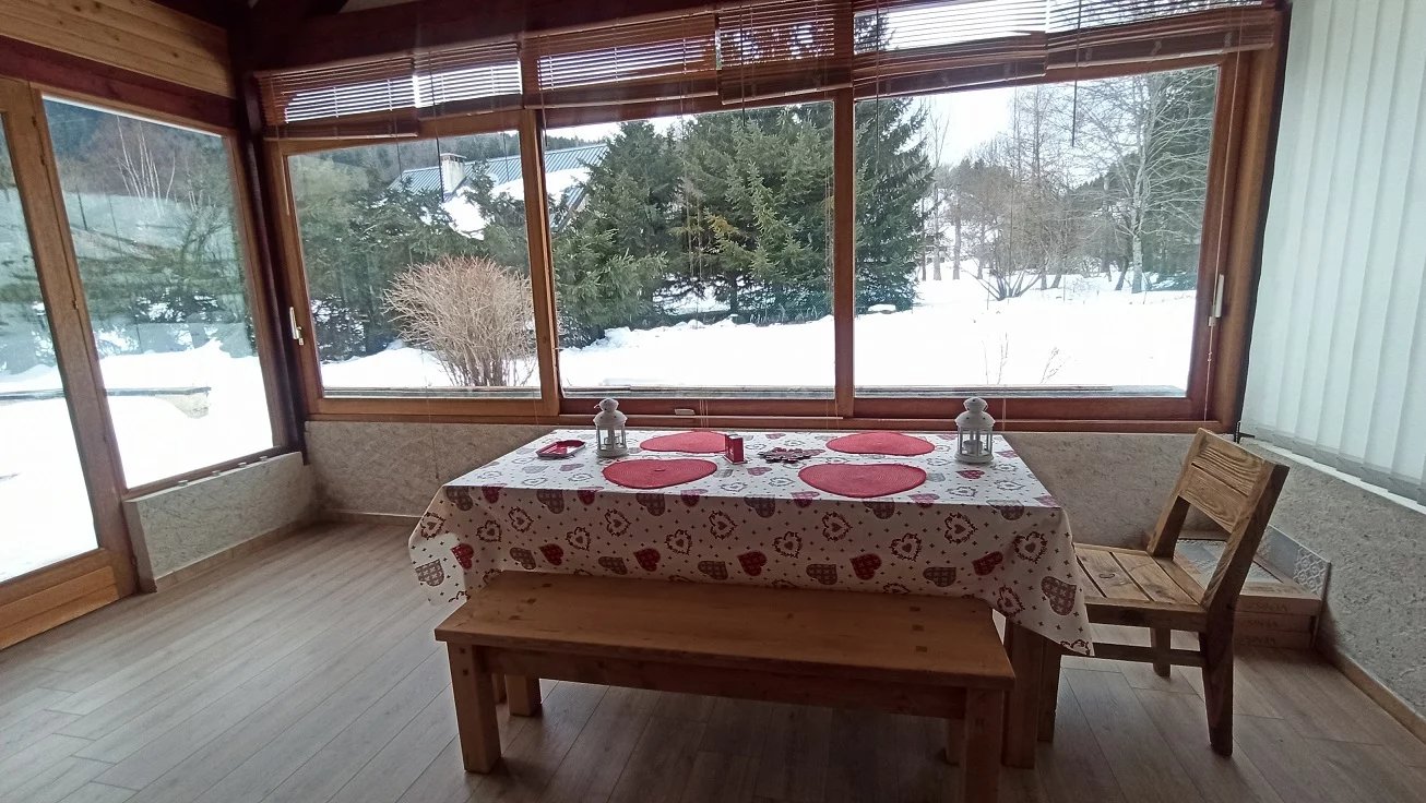 Elle comprend une grande entrée, une cuisine équipée ( four - lave vaisselle - micro ondes etc...) avec accès sur spacieuse véranda plein Sud. Un salon - salle à manger , une terrasse Sud avec très belle vue sur les montagnes. wc séparé.