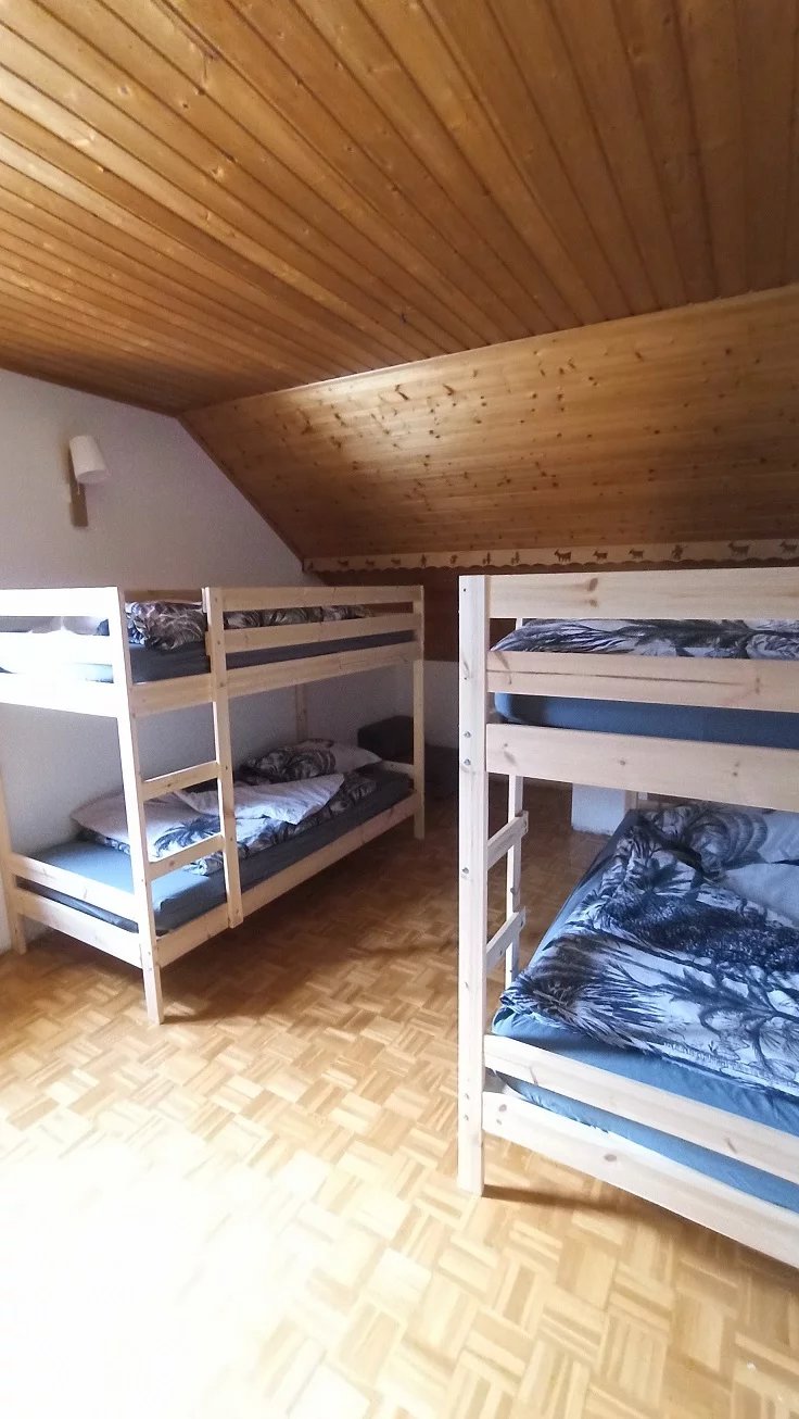 A L'étage : une salle de bains ( douche et baignoire ) wc séparé, chambre n°1 avec lit 140 , chambre n°2 avec 2 x lits superposes soit 4x90, chambre n°3 avec lit 140 .