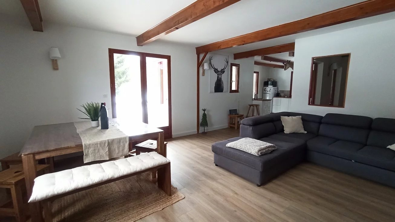 Totalement indépendante sur ses 1500 m² de terrain plat en bordure de ruisseau.