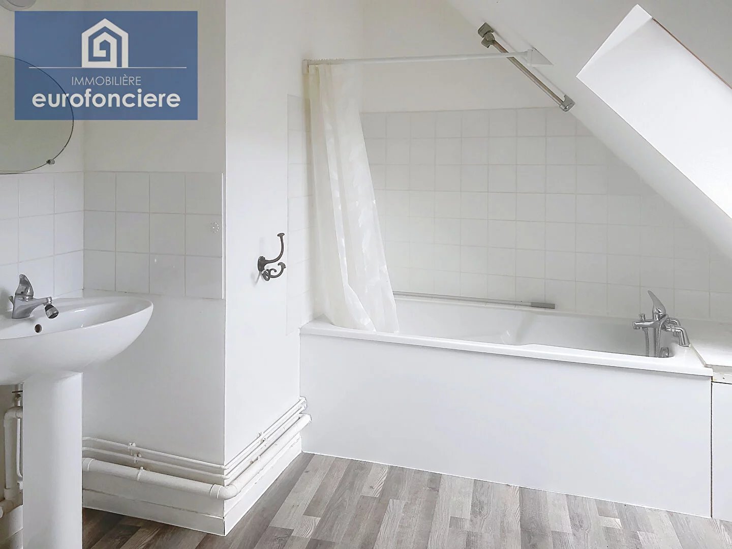 A louer Aix en Othe au coeur du centre ville, appartement cocooning de type III comprenant une entrée avec placard, séjour ouvert sur cuisine, deux chambres, WC, salle de bains .