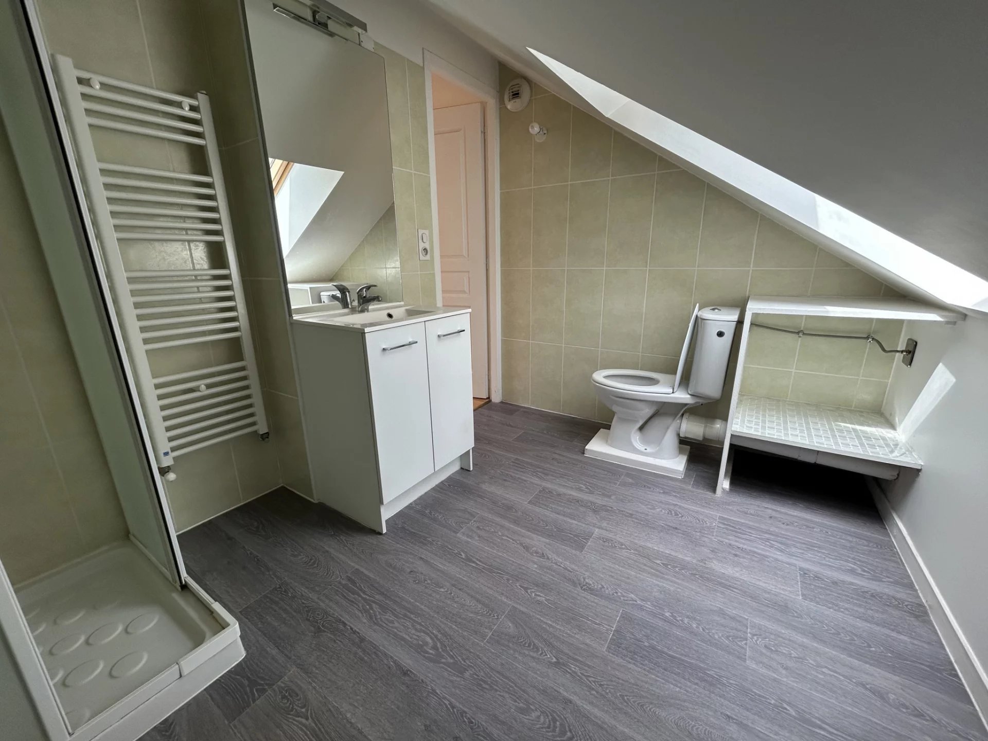 656 € / Mois (Charges comprises)Ref 704G: Appartement T2 en duplex situé rue Masclef à Amiens, secteur Gare La vallée - au 1er étage comprenant une pièce de vie avec cuisine meublée et équipée (plaque de cuisson, frigo, hotte et four), une chambre à l'étage mansardée, une salle d'eau avec wc et un parking aérien - chauffage au gaz - LOYER 540EUR + Prov. de 30EUR (TOM & entretien annuel chaudière) - LIBRE AU 30 JUIN - ref 704G