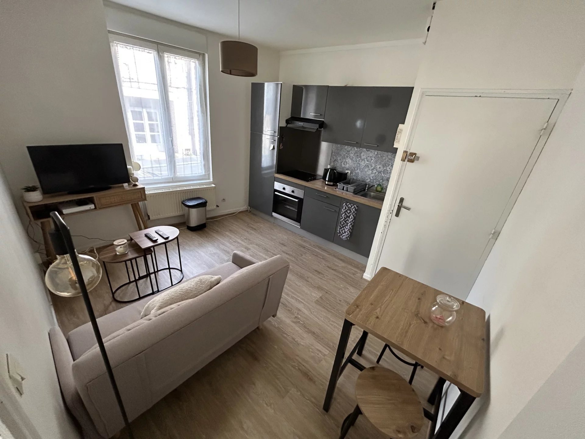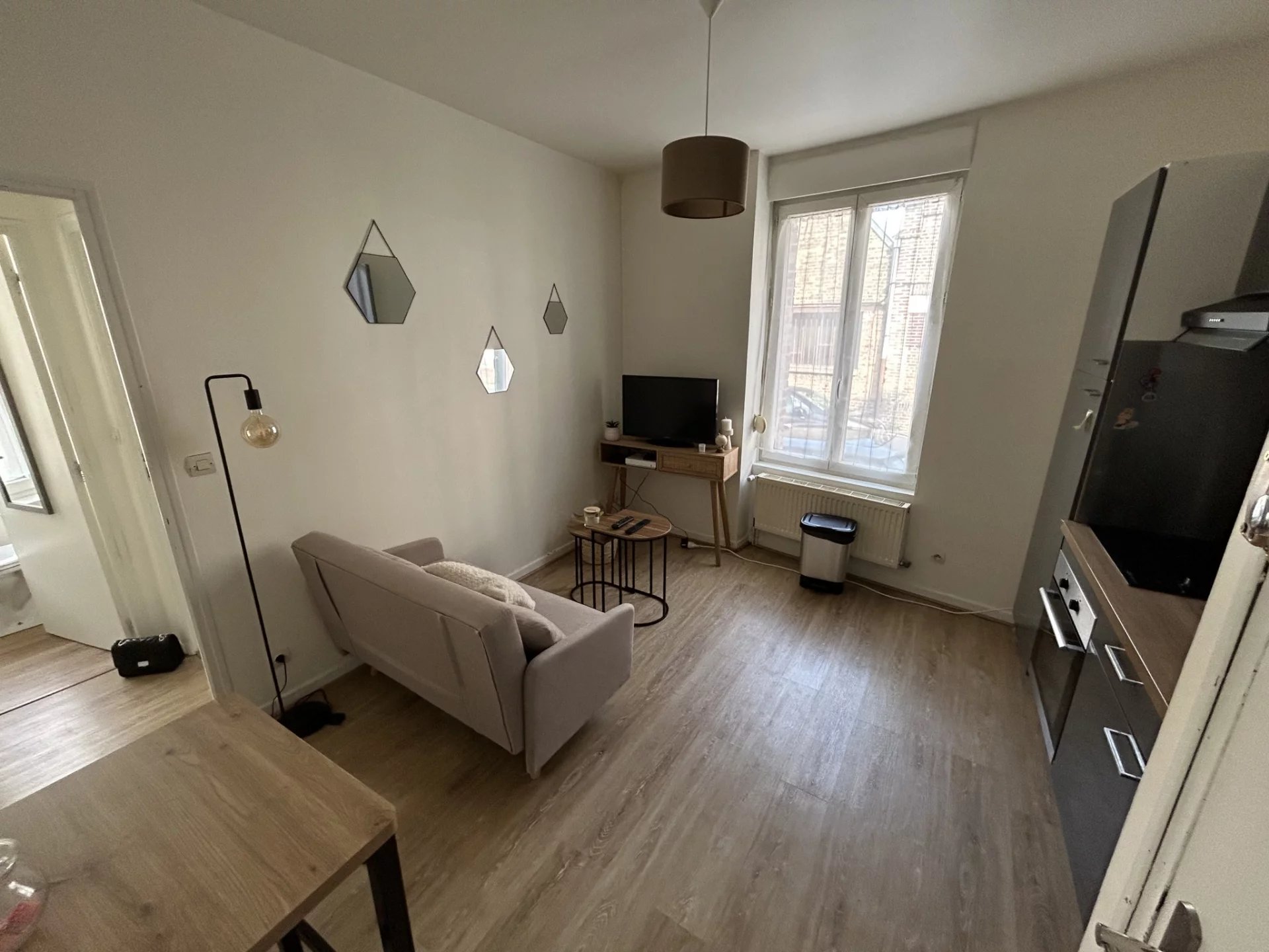 Ref 366G/1 Appartement de type 2 au rez-de-chaussée situé sur le bas de la rue Albéric de Calonne, secteur Bas Henriville, proche de la gare et des bus, comprenant séjour avec cuisine équipée (plaque de cuisson, four, réfrigérateur, hotte et meubles), une chambre, une salle d'eau avec douche et wc. Placard de rangement avec branchement lave-linge. Chauffage collectif inclus - Superficie 23m2 - LOYER 465EUR + Prov/mensuelle 90 EUR (eau froide, chauffage, tom et l'électricité des communs) LIBRE AU 21 JUILLET - réf 366G/1