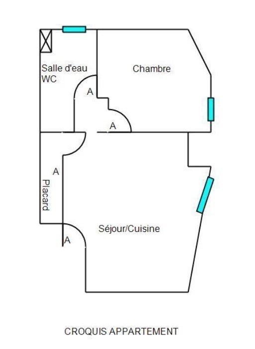 Appartement 21.43 m² 2 pièces / 1 chambre