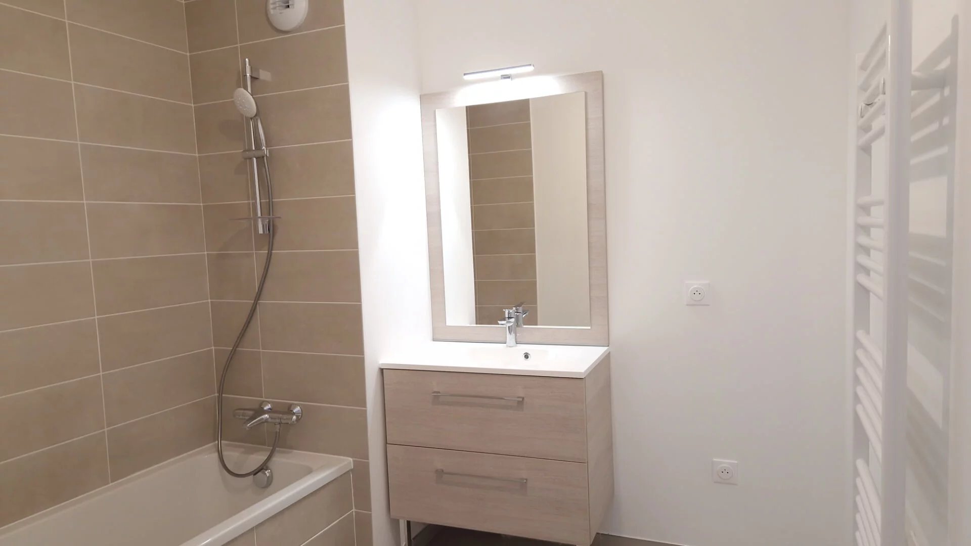 Dans une résidence neuve, beau T3 traversant au 4ème étage composé d'une entrée avec placard, une cuisine ouverte sur un séjour avec balcon, un dégagement menant à 2 chambres avec placards, une salle de bains et un toilette séparé.