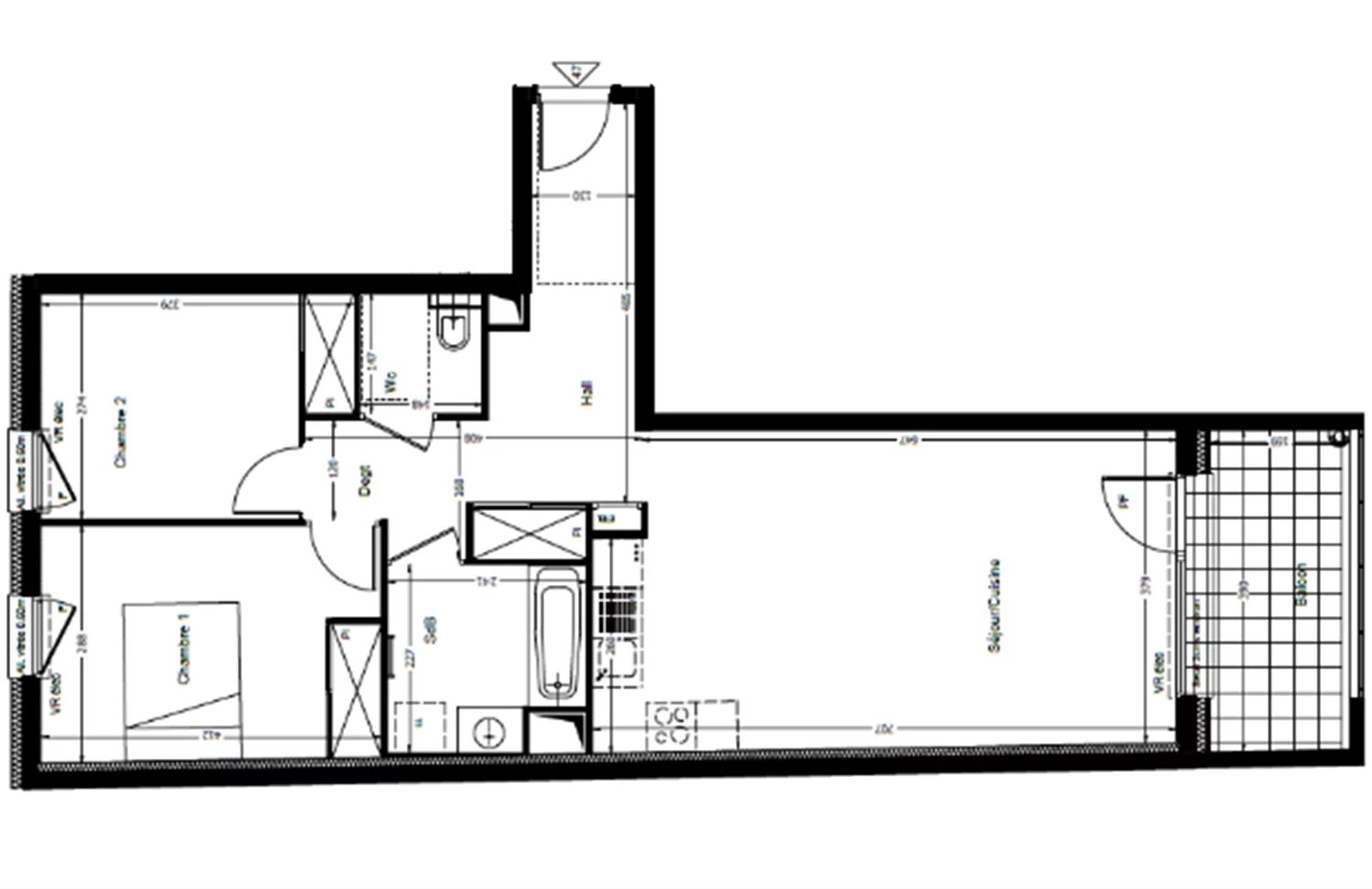 Appartement 53.26 m² 3 pièces / 2 chambres