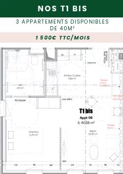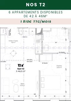 - T1 bis : 3 appartements de 40 m2 à 1500EUR / mois - T2 : 6 appartements de 42 à 46 m2 à 1810EUR / mois - T3 : 1 appartement de 74 m2 à 2500EUR / mois