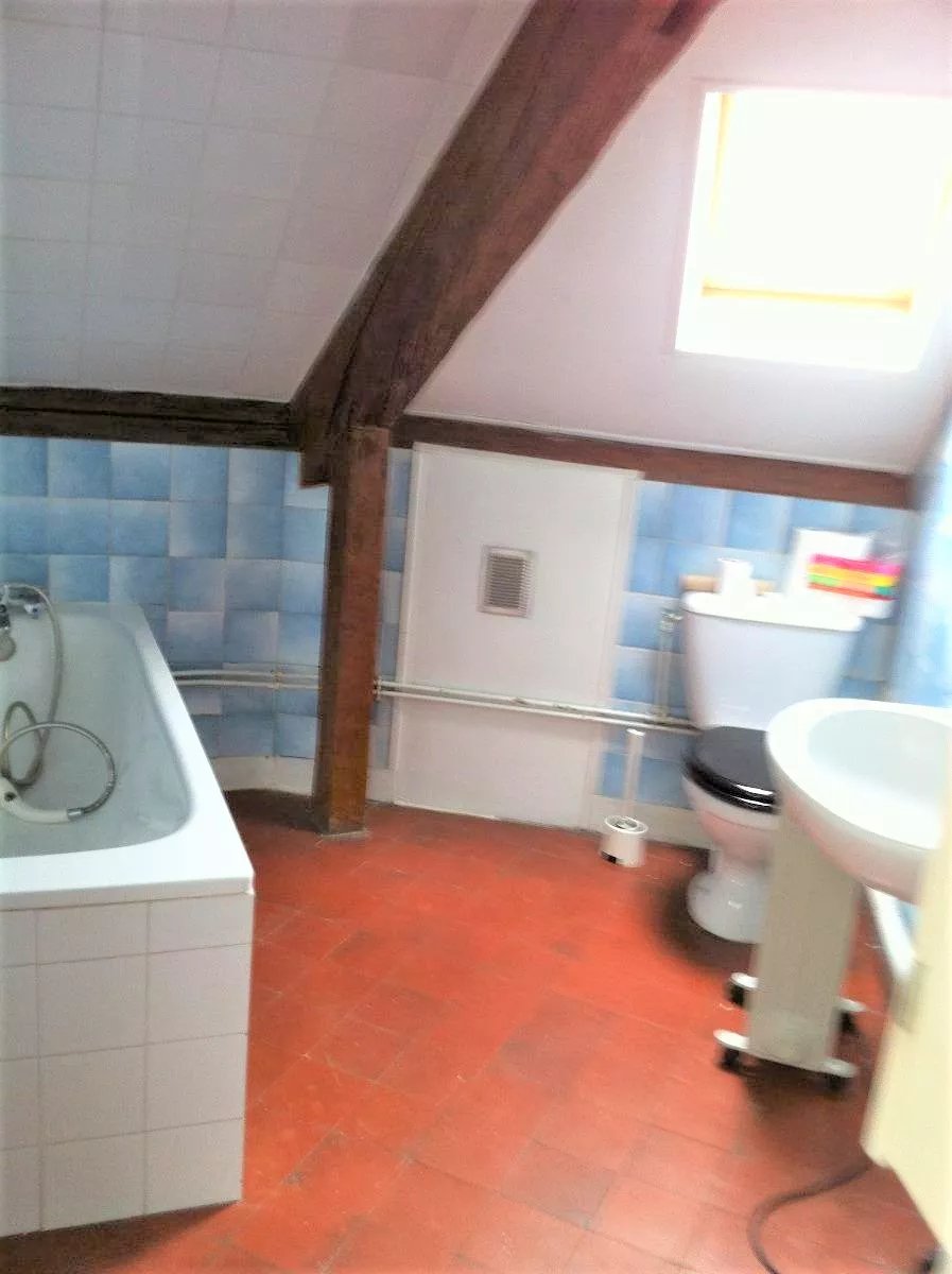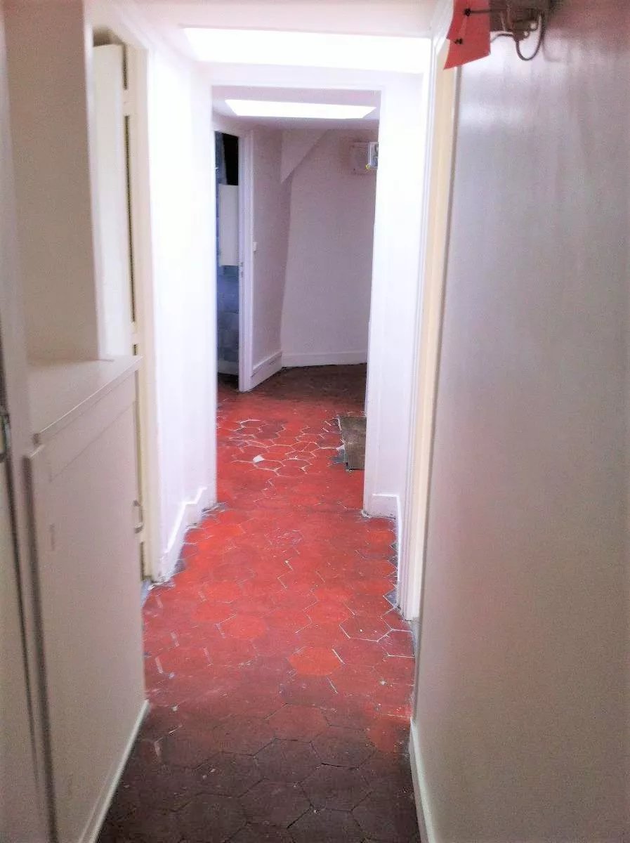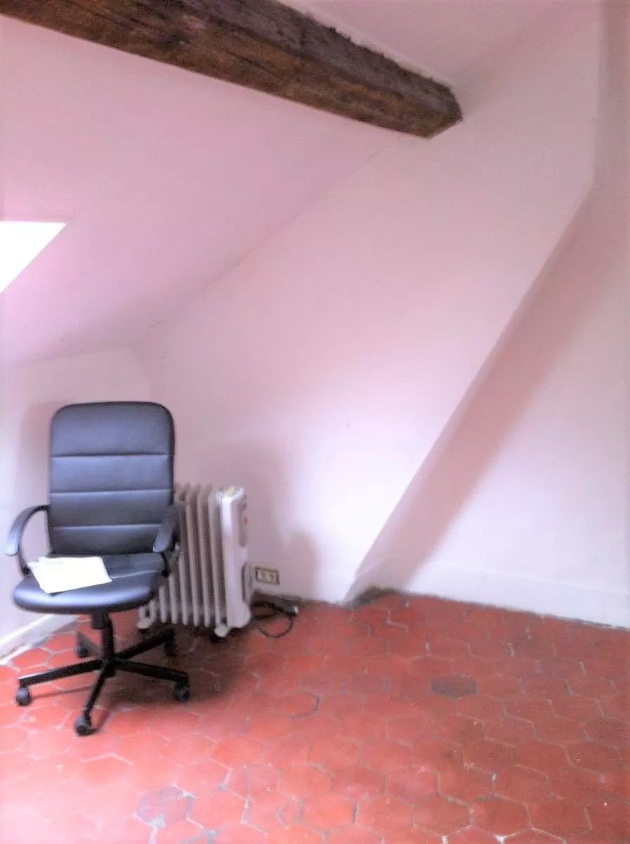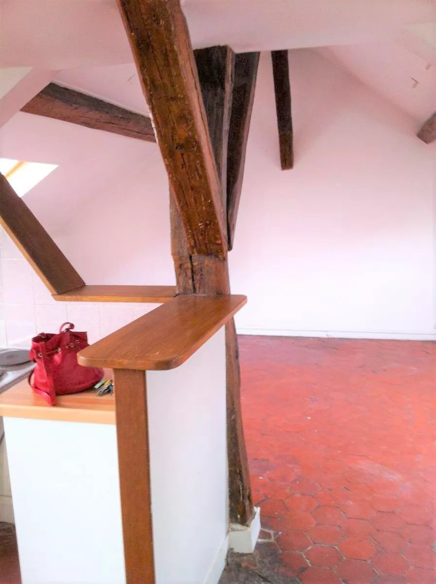 Appartement situé à 5min du RER Laplace, proximité immédiate de la Vache Noire, dans immeuble ancien avec digicode, au 3ème et dernier étage. Accès par escalier privatif, appartement mansardé de 62m² en surface habitable avec poutres apparentes, offrant une entrée, un séjour, une cuisine ouverte avec bar, 2 chambres, un bureau, une salle de bains avec WC. Chauffage individuel électrique.