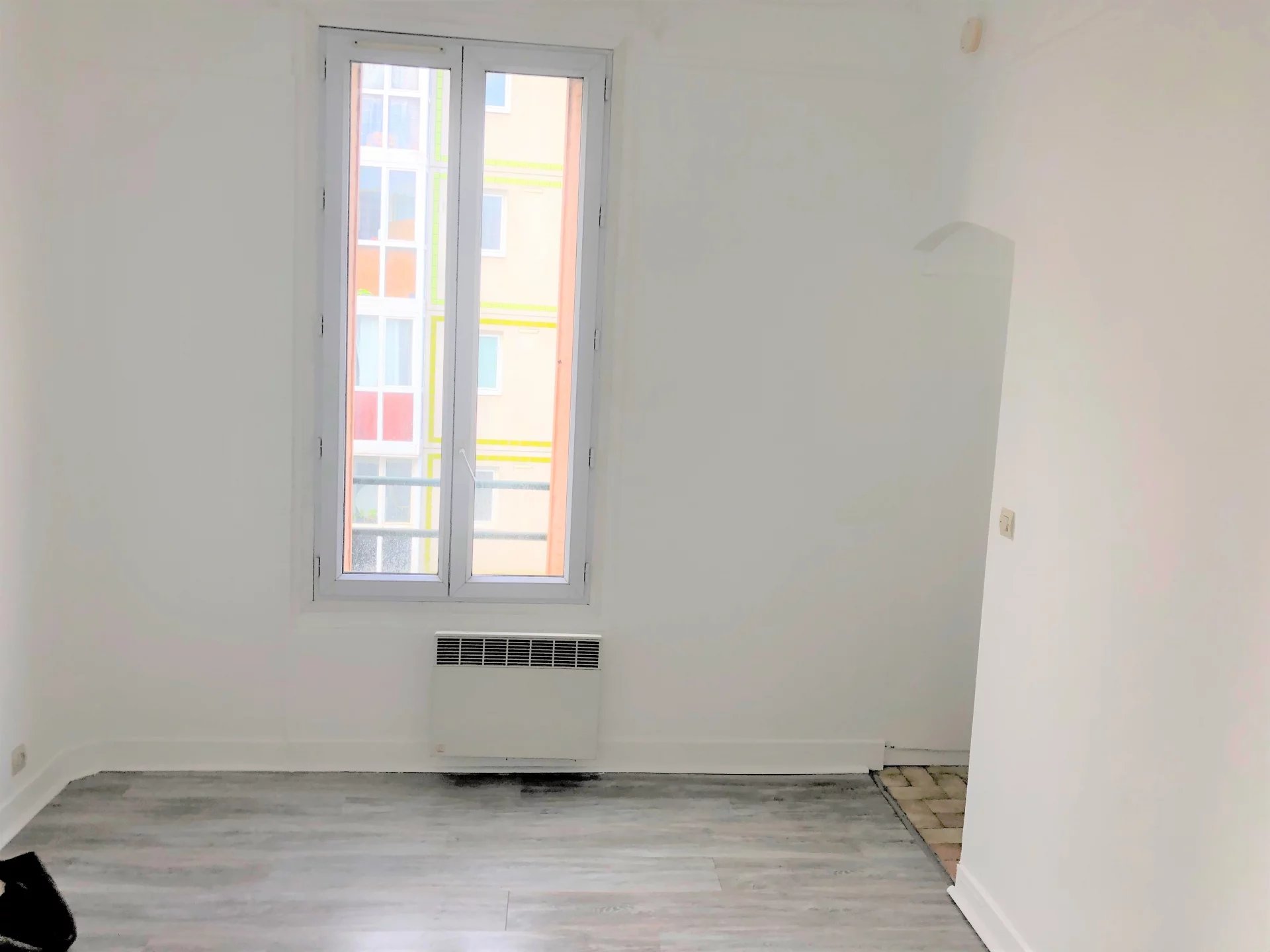 quartier hôtel de ville, bus 128 et 162, immeuble avec digicode et clé, au 2ème étage comprenant entrée, séjour, petite cuisine séparée plaques et frigo, chambre, salle de bains, WC séparés. Local machine à laver.