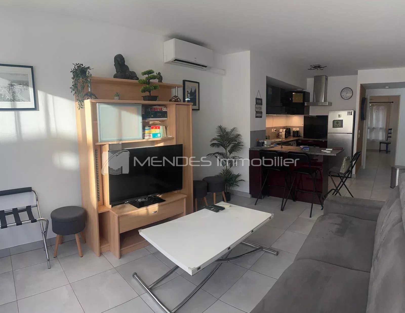 Beau 2 pièces meublé avec terrasse et Garage en étage élevé composé d'une entrée, une séjour avec cuisine américaine équipée , une chambre , une salle d'eau avec WC