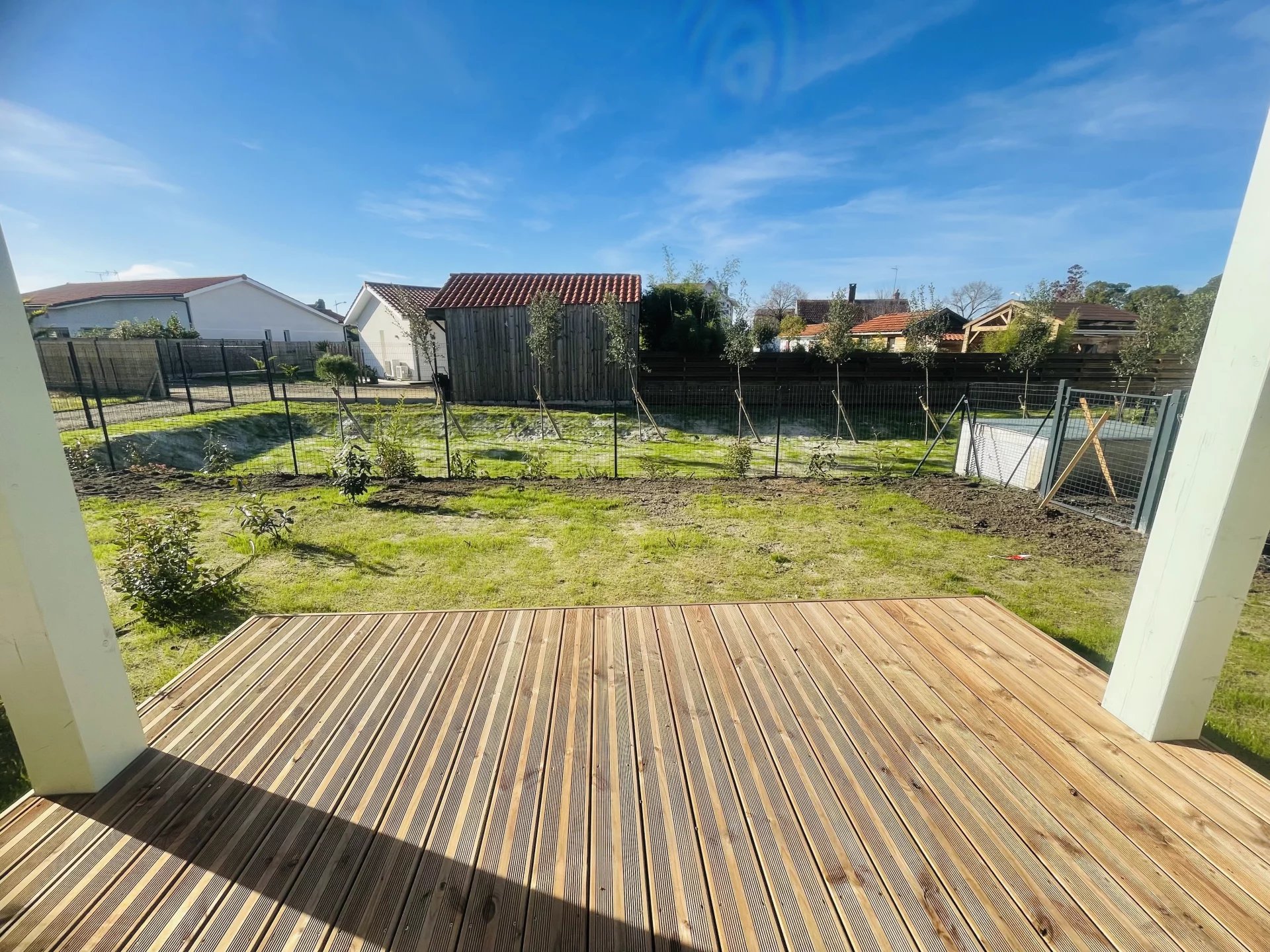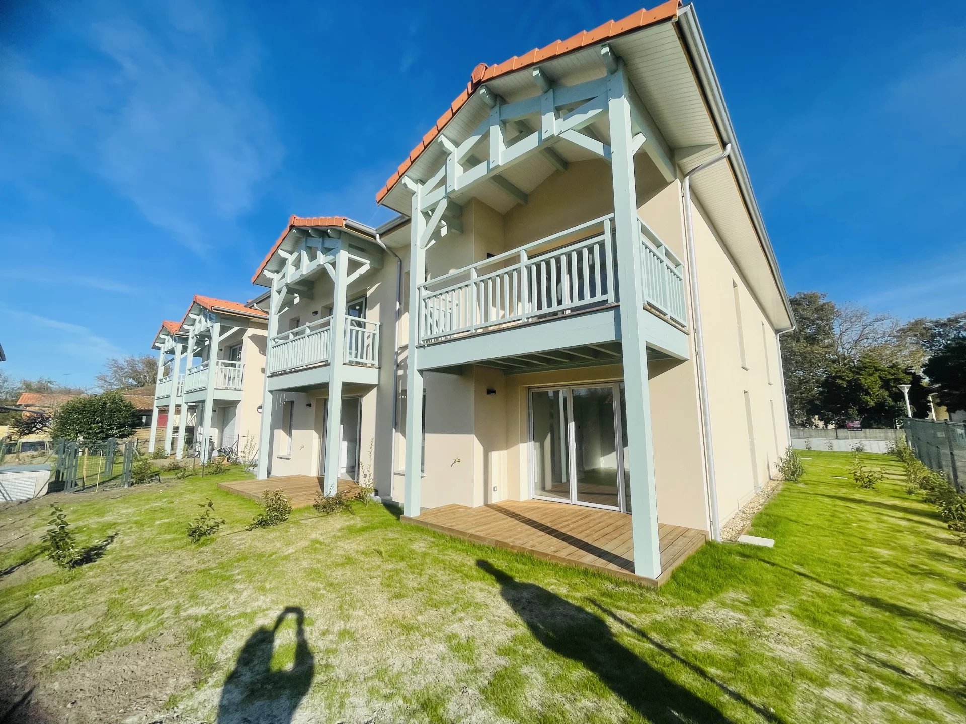 Agréable appartement neuf T2 situé en rez-de-jardin d'une superficie de 41.19 m2. Il est composé d'une entrée, d'un séjour avec cuisine équipée (évier inox, plaque 2 feux, hotte, meubles hauts et bas, frigo top) donnant sur une terrase de 7.60m² avec un jardin de 101m², d'une chambre avec placard, d'une salle d'eau aménagée avec WC. Il bénéficie d'un parking double au sous-sol.
