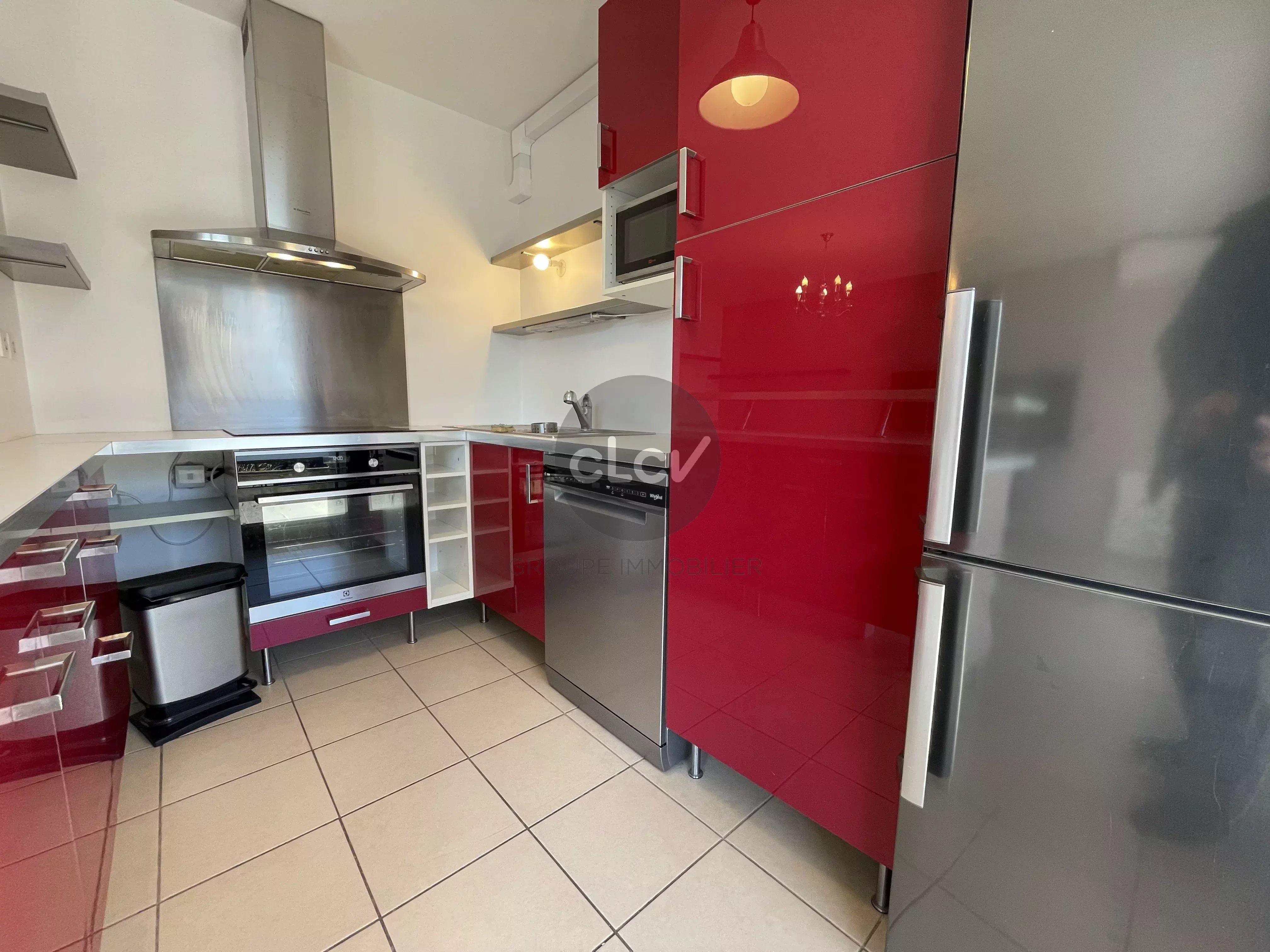 T3 meublé climatisé avec Terrasse pour manger, Garage fermé en sous-sol, Piscine, Parkings libres dans la résidence, en étage avec Ascenseur, à proximité des commodités (Bus, Commerces, Écoles, à quelques arrêts de Bus du Métro Cuire, du Campus de la Doua…).
