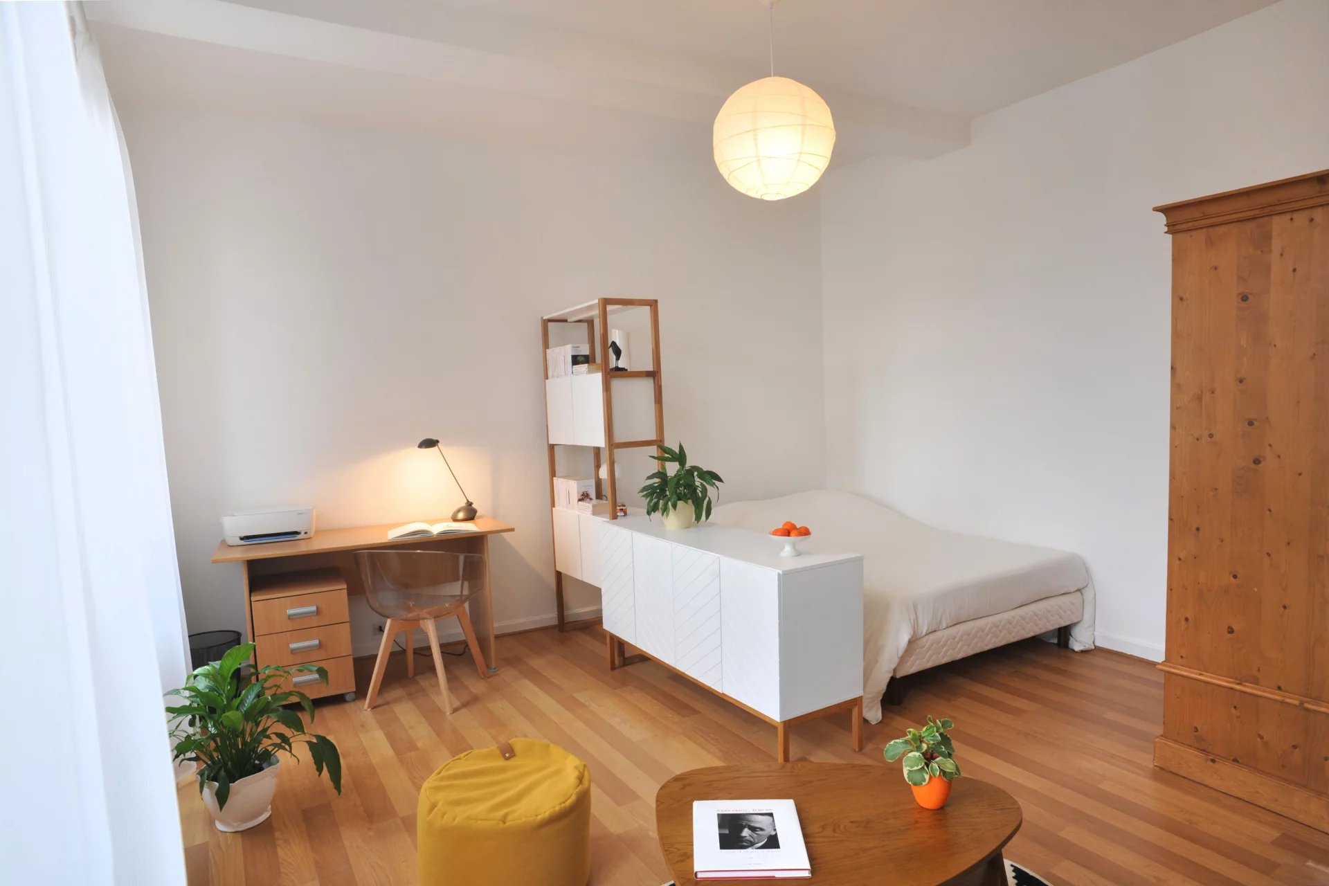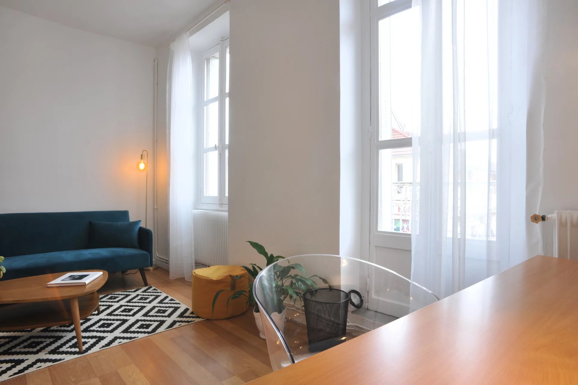 DIJON, rue d'Auxonne, studio d'environ 29 m2 meublé et refait à neuf situé au 1er étage d'un immeuble de trois étages sécurisé avec interphone. Idéal étudiant(e). Proximité facultés (5' à pied environ) et centre ville. Accès aisé à tous commerces et transports (bus, tram). Boulangerie au pied de l'appartement. Logement très lumineux comprenant : une entrée, une cuisine entièrement équipée à neuf (four/micro-ondes combiné, réfrigérateur, plaques, lave-linge), une très belle pièce à vivre parquetée (espaces bureau et salon, coin chambre), une salle d'eau avec WC. Chauffage individuel au gaz.