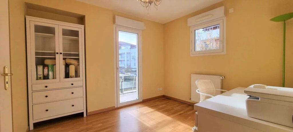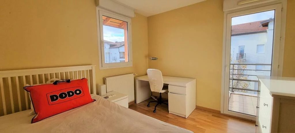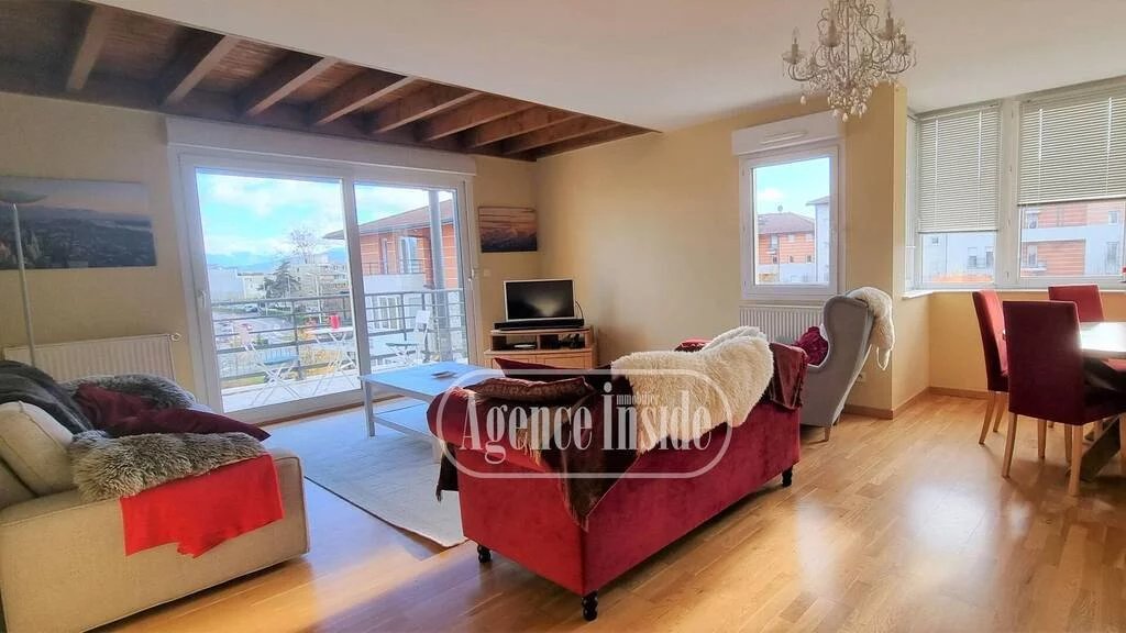 Appartement duplex meublé très bien situé, face au lycée international. LIBRE 02 février 2026. Grande cuisine équipée donnant sur coin repas et salon avec balcon. Exposé EST avec vue sur les Alpes. 4 chambres dont deux avec salles de douches attenantes, un bureau, une salle de bains, 2 emplacements de parking extérieurs privatifs et une cave. LIBRE 30 janvier 20266