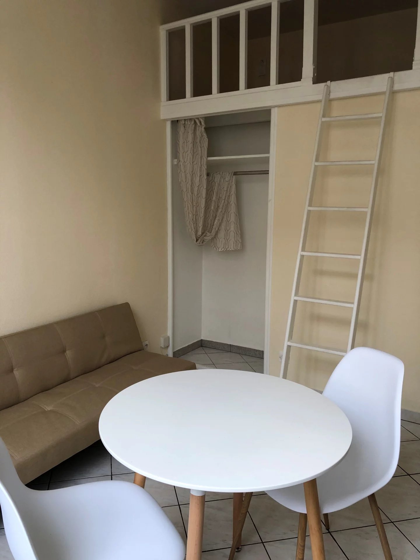 M° PIERRE ET MARIE CURIE - IVRY SUR SEINE, 2 pièces meublé au rez-de-chaussée sur rue comprenant entrée, séjour avec kitchenette équipée et mezzanine, chambre avec mezzanine, buanderie, salle d'eau avec w-c douche à l'italienne. Idéal étudiant ou pied à terre.