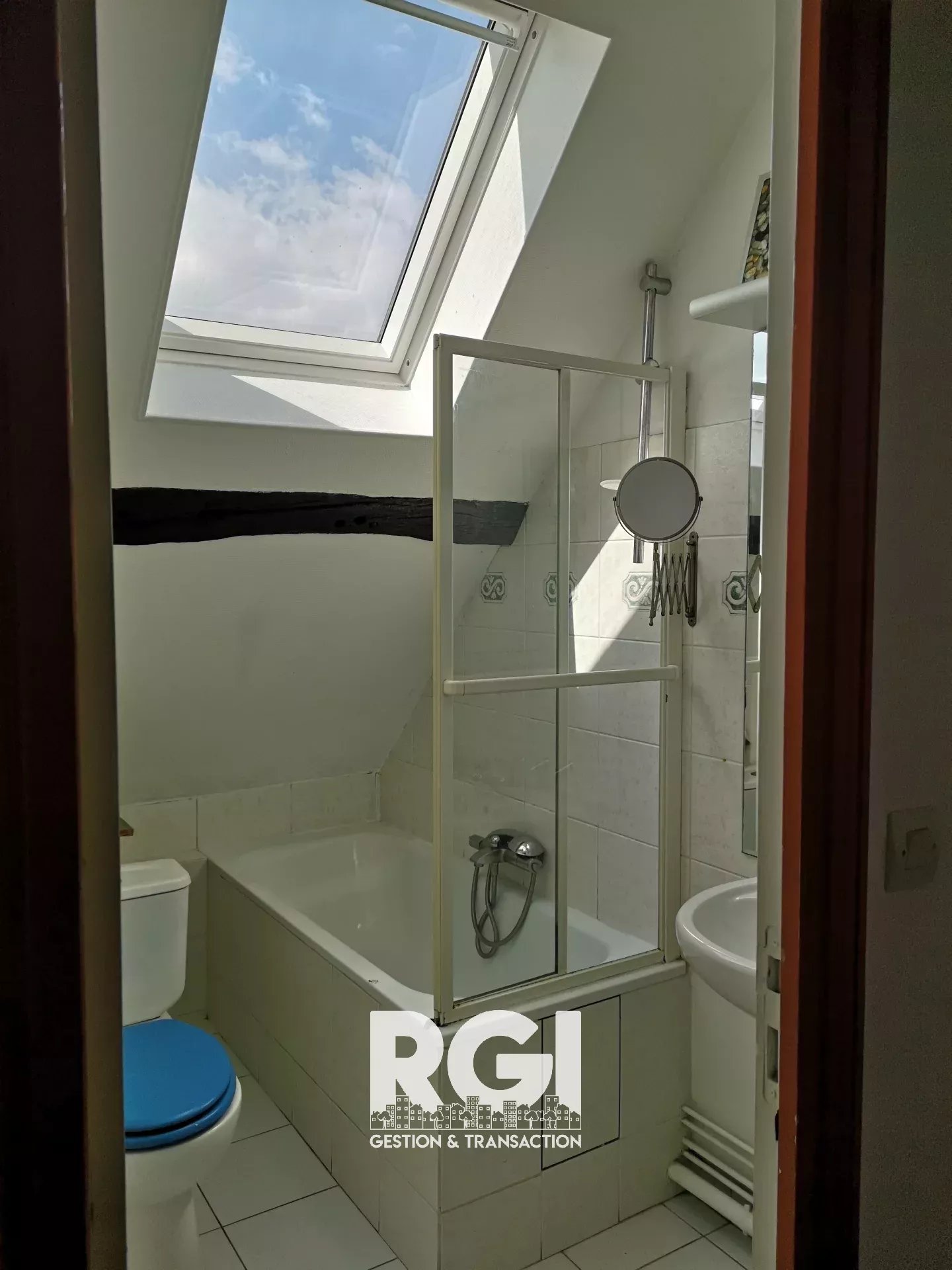 Bel appartement de caractère, en duplex, dans maison ancienne rénovée (poutres, tomettes) - 100 m² utiles, 1er étage, comprenant : entrée, cuisine aménagée, chambre, WC séparé, séjour. A l'étage : 2 Chambres, SDB avec WC. Cave voutée. 2 parkings privés extérieurs. Calme. Huisseries double vitrages. Les Charges comprennent l'eau froide. Libre . R G I LE MESNIL-SAINT-DENIS.