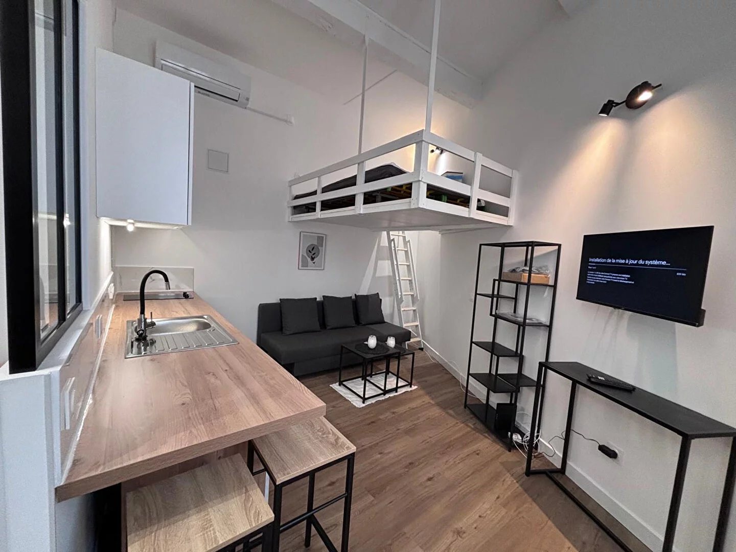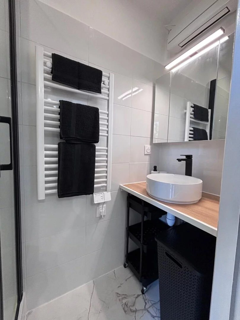 Studio atypique meublé entièrement rénové en 2025, équipé et climatisé, situé en RDC d'une maison en copropriété.