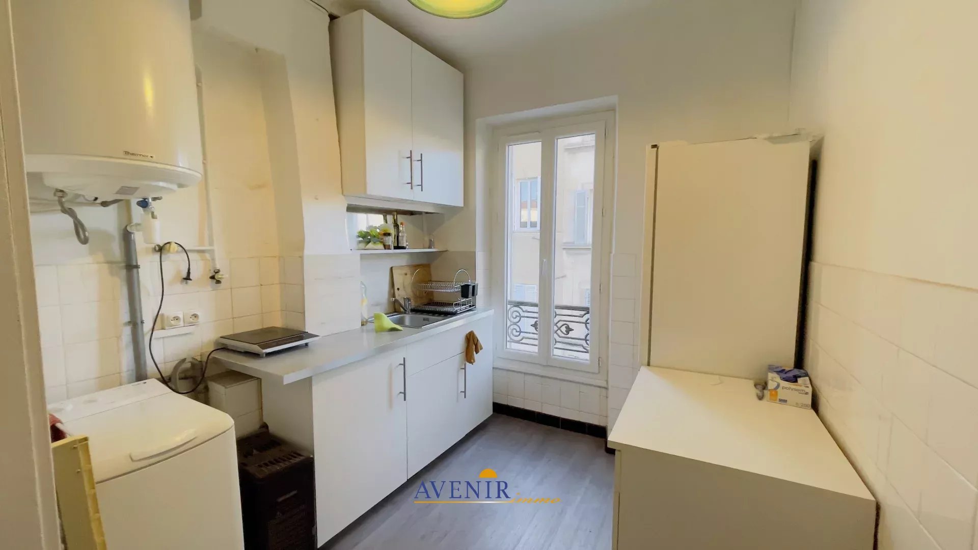 Cet appartement de 33 m² situé au 2ème étage sans ascenseur, offre un grand séjour de 23 m2 avec un espace bureau et un espace nuit.