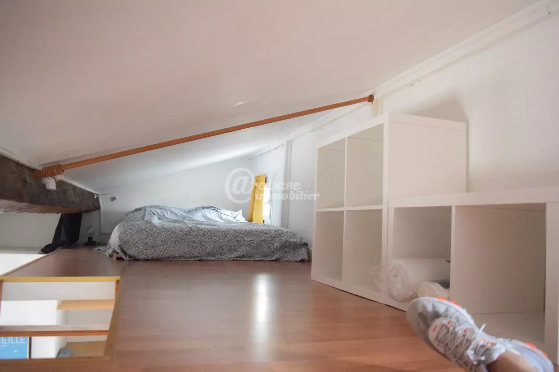 Beau studio meublé au dernier étage avec ascenseur. Cet appartement calme, ensoleillé bénéficie d'un couchage en mezzanine et d'une pièce de vie avec kitchenette, plaque et frigo.