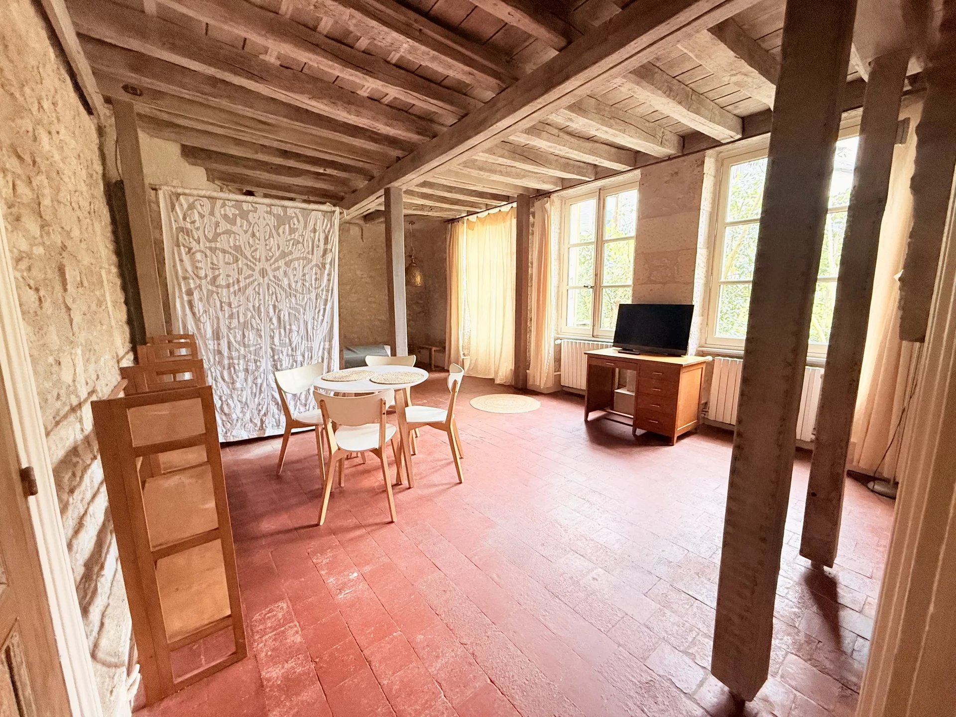 Dans un Bâtiment historique au centre-ville de Nevers, proche de toutes commodités dans une cour intérieur au calme vous y trouverez au rez-de-chaussée, un grand studio meublée et équipée comprenant une grande pièce à vivre avec un coin nuit, une cuisine équipée, une salle de bains, et un toilettes. DANS LES CHARGES vous avez le chauffage, l'eau froide, l'eau chaude et l'électricité qui sont compris dans le prix du loyer.