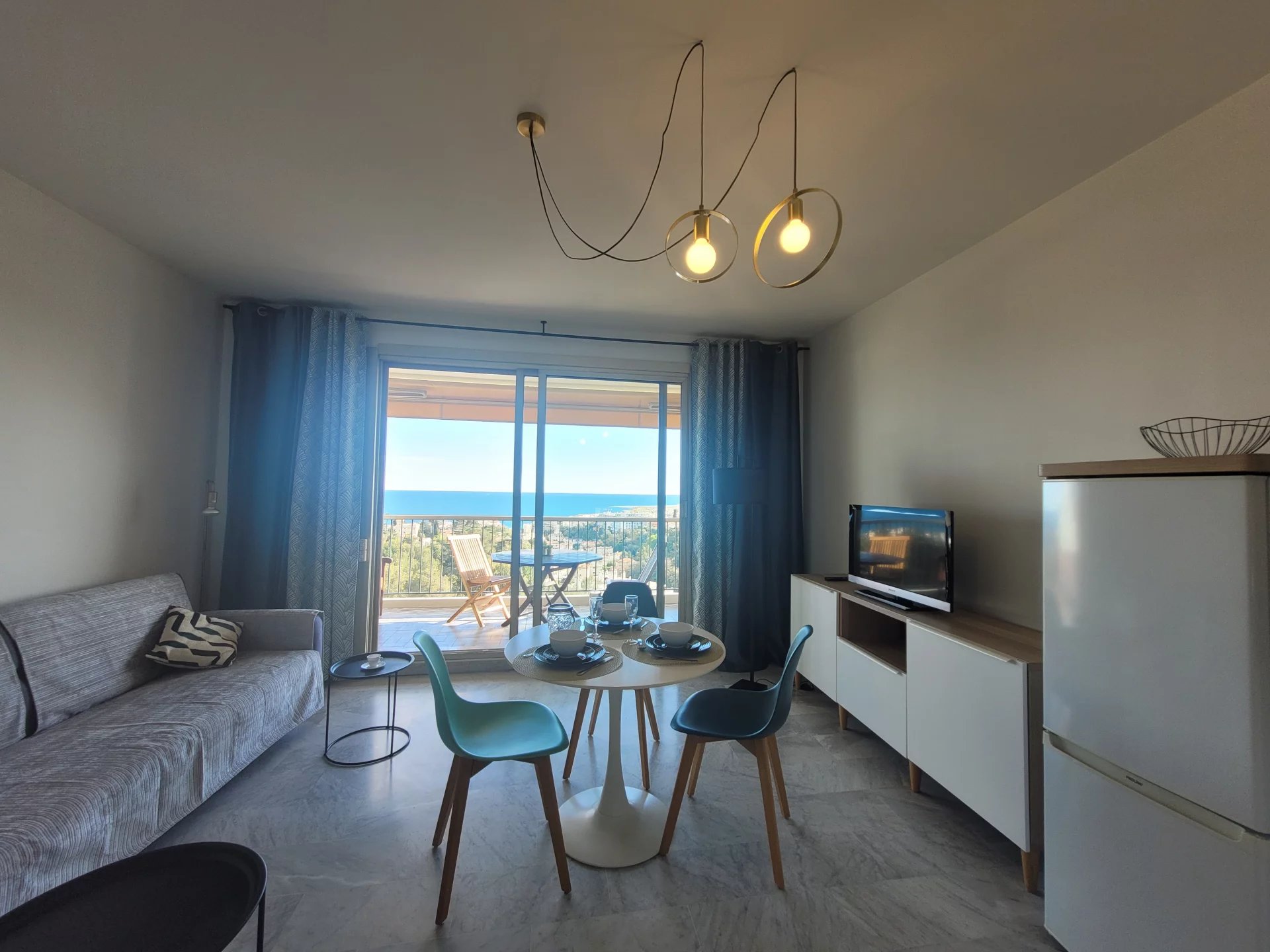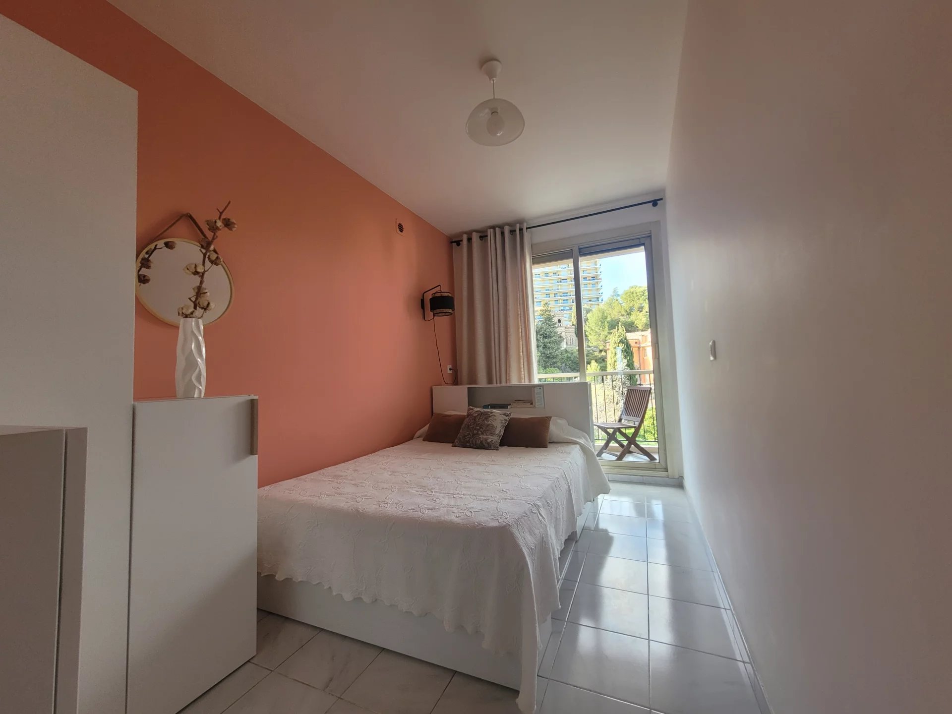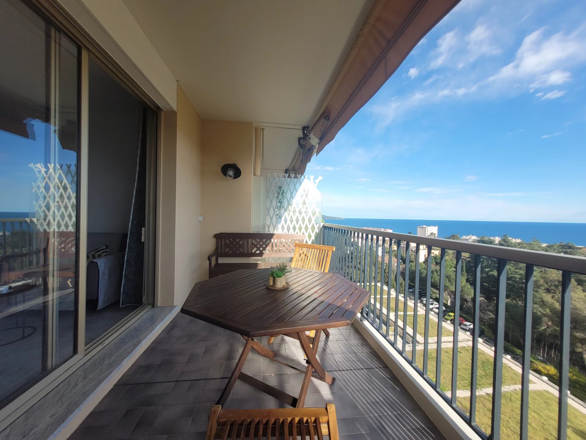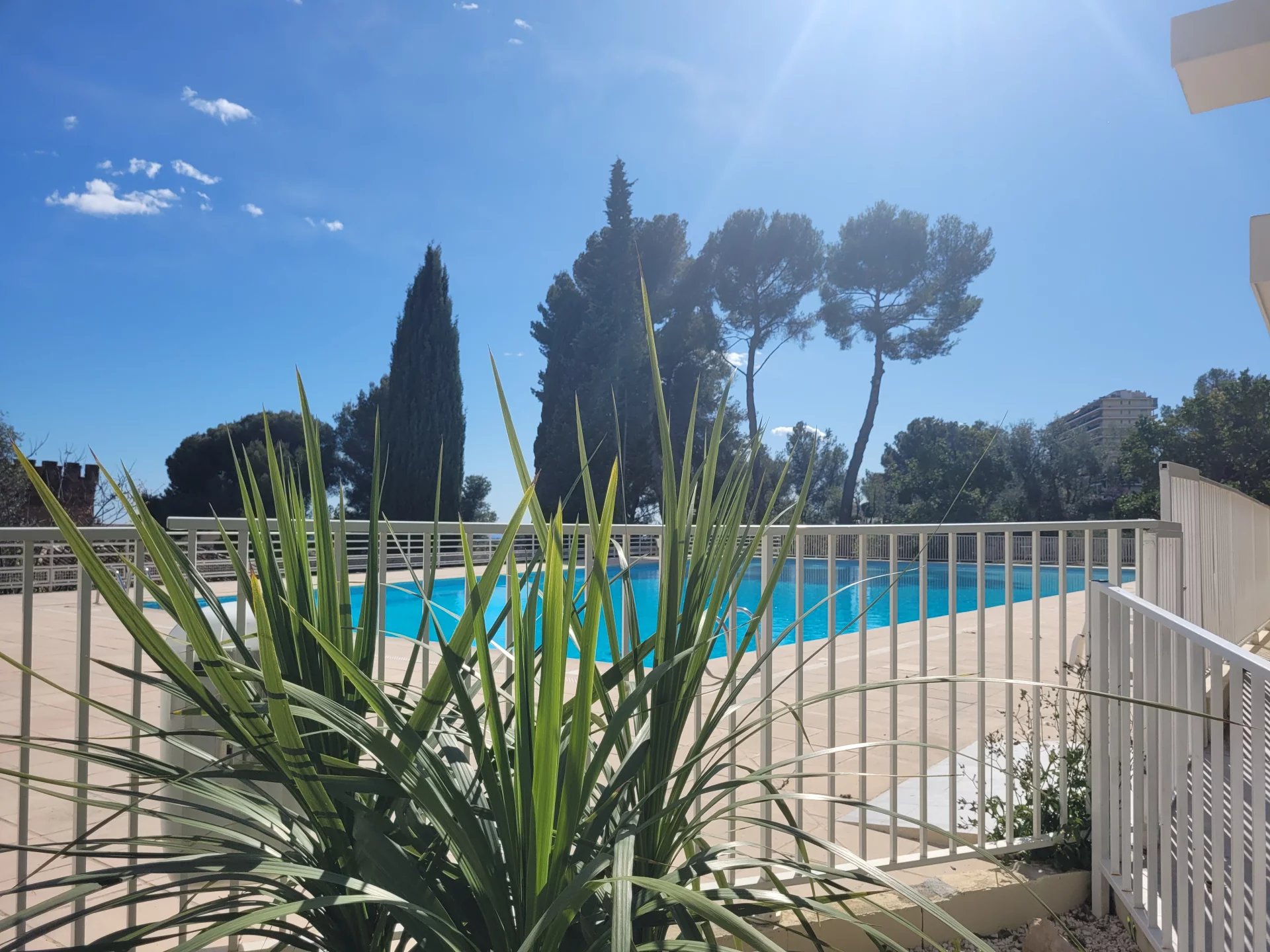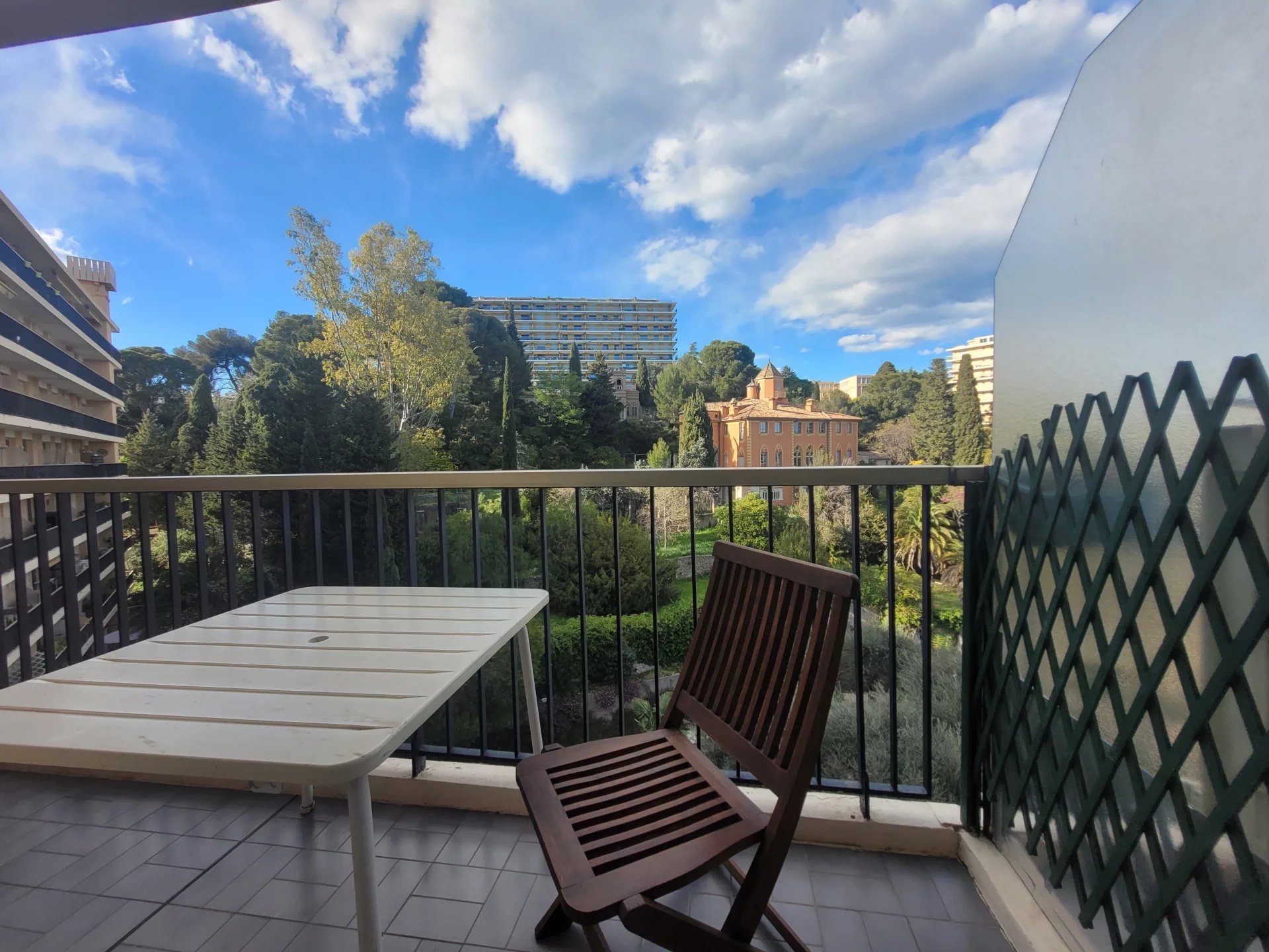 ABBAYE DE ROSELAND, Nice ouest, tramway à 10mn, 2P meublé excellent état avec superbes terrasses vue mer côté sud et vue sur l'abbaye de Roseland côté nord. Calme total, piscine, tennis, jeu de boules et parcours pédestre dans la forêt. Libre de suite