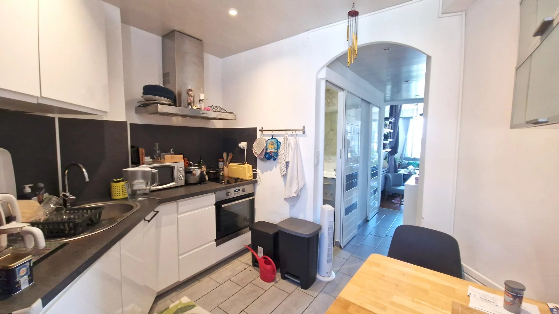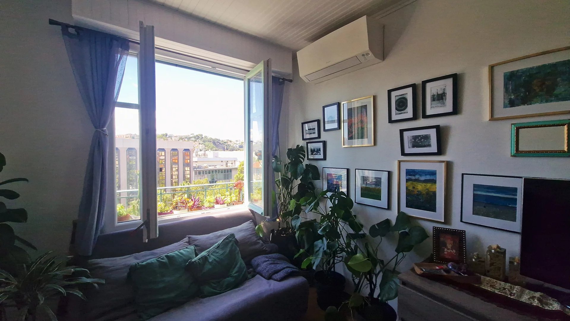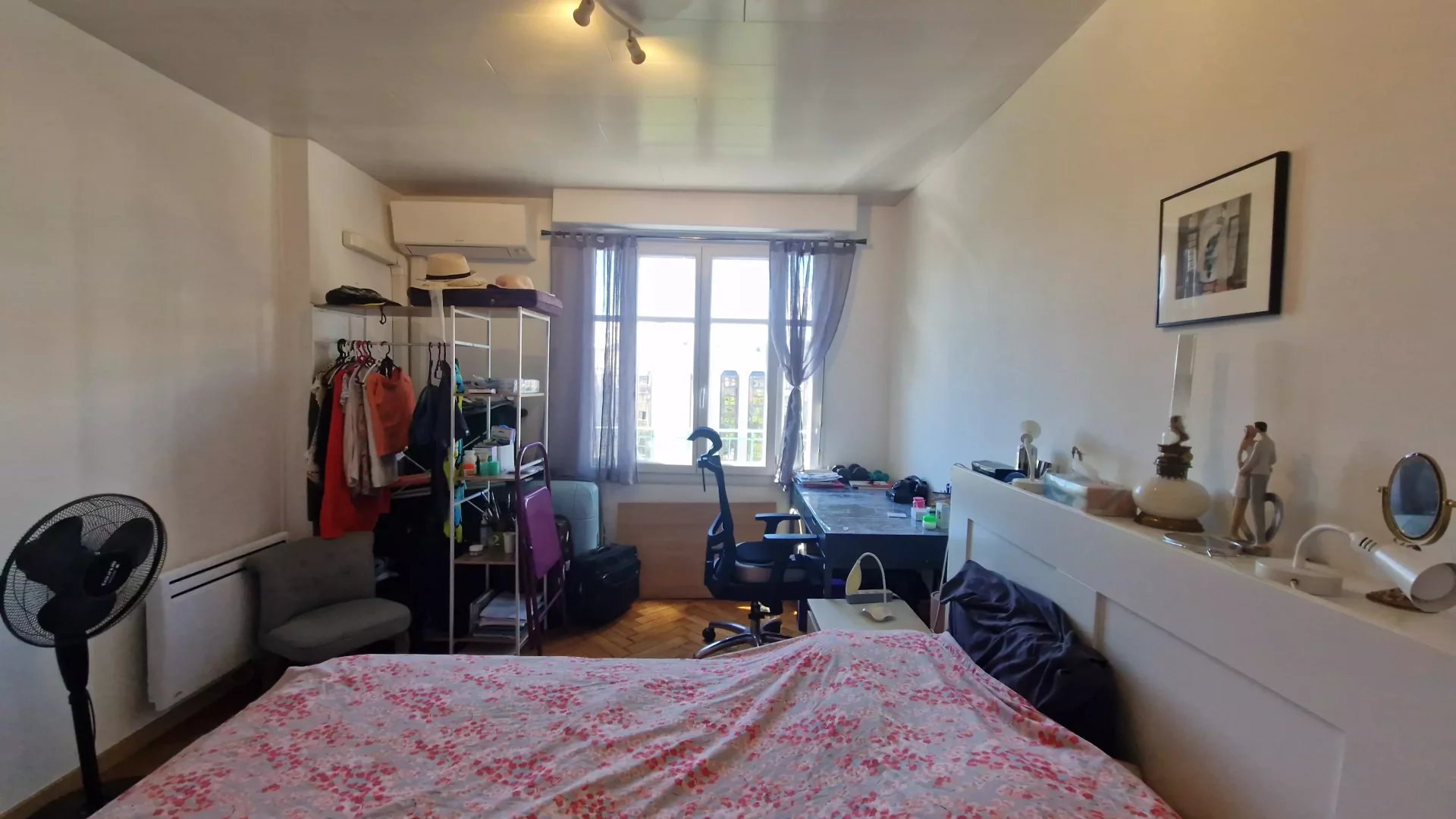 DERNIER ETAGE VUE PANORAM%IQUE JARDINS DANS UN PALAIS BOURGEOIS beau 2p meublé et climatisé en étage supérieur rénovation récente , totalement équipé avec une belle cuisine et une grande chambre .Baigné de lumière, au calme , avec tout A PIED COMMERCES TRAM avec la future coulée verte à vos pieds