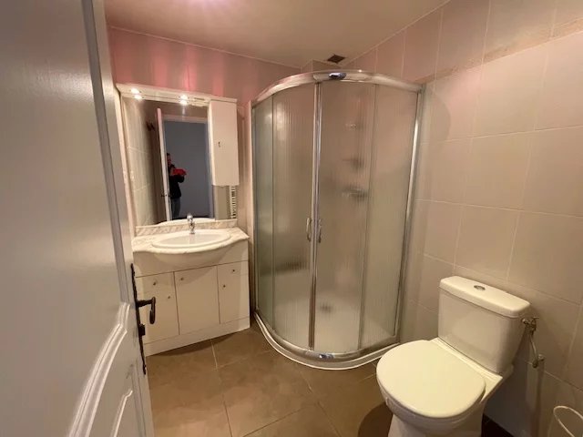 D'une salle de douche agréable avec coin sanitaires et radiateur sèche serviettes, une chambre. parquet ancien entièrement rénové et peintures neuves.