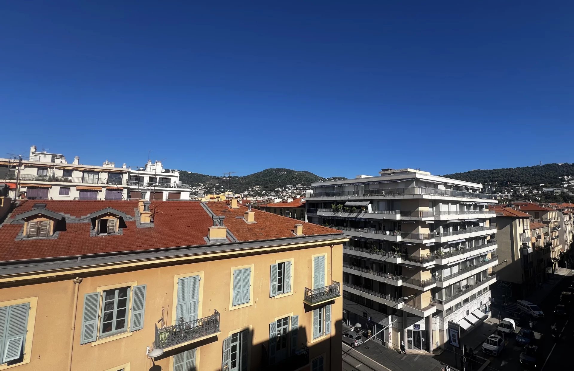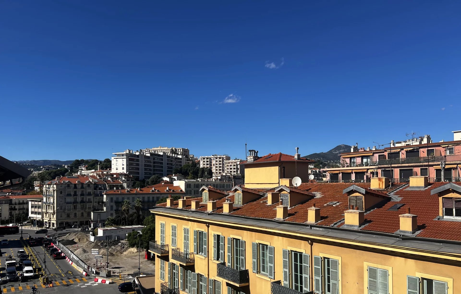 A deux pas de la place Garibaldi, magnifique 2 pièces en avant dernier étage avec ascenseur, séjour avec cuisine ouverte aménagée et équipée de 24 m², grande chambre avec nombreux rangements, salle d'eau(lave-linge) et wc séparé avec lave-mains.