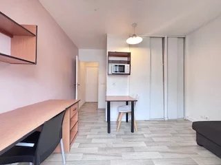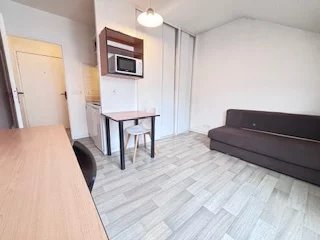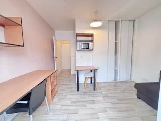 Paris 12 ème - 16 Rue Victor Chevreuil - Studio meublé situé au 4 ème et dernier étage ascenseur, d'un immeuble neuf, avec gardien, digicode et interphone et local vélo. Immeuble sécurisé et au calme. Il se compose d'une entrée avec grand dressing en toute hauteur; une salle d'eau avec toilette et emplacement pour machine à laver, une cuisine aménagée, une pièce à vivre avec coin repas, bureau et chambre. Clair et calme. Dernier étage, sans vis à vis, double vitrage; Dossier avec garant en CDI.
