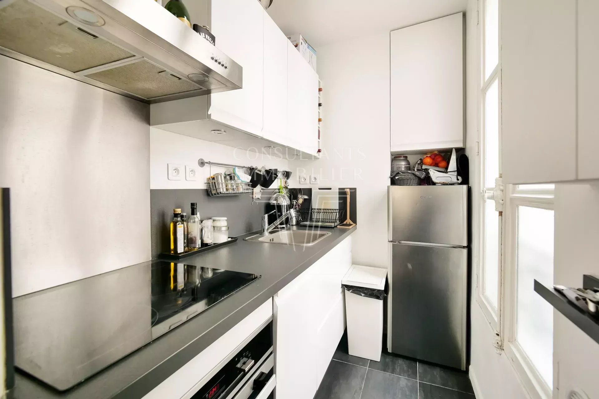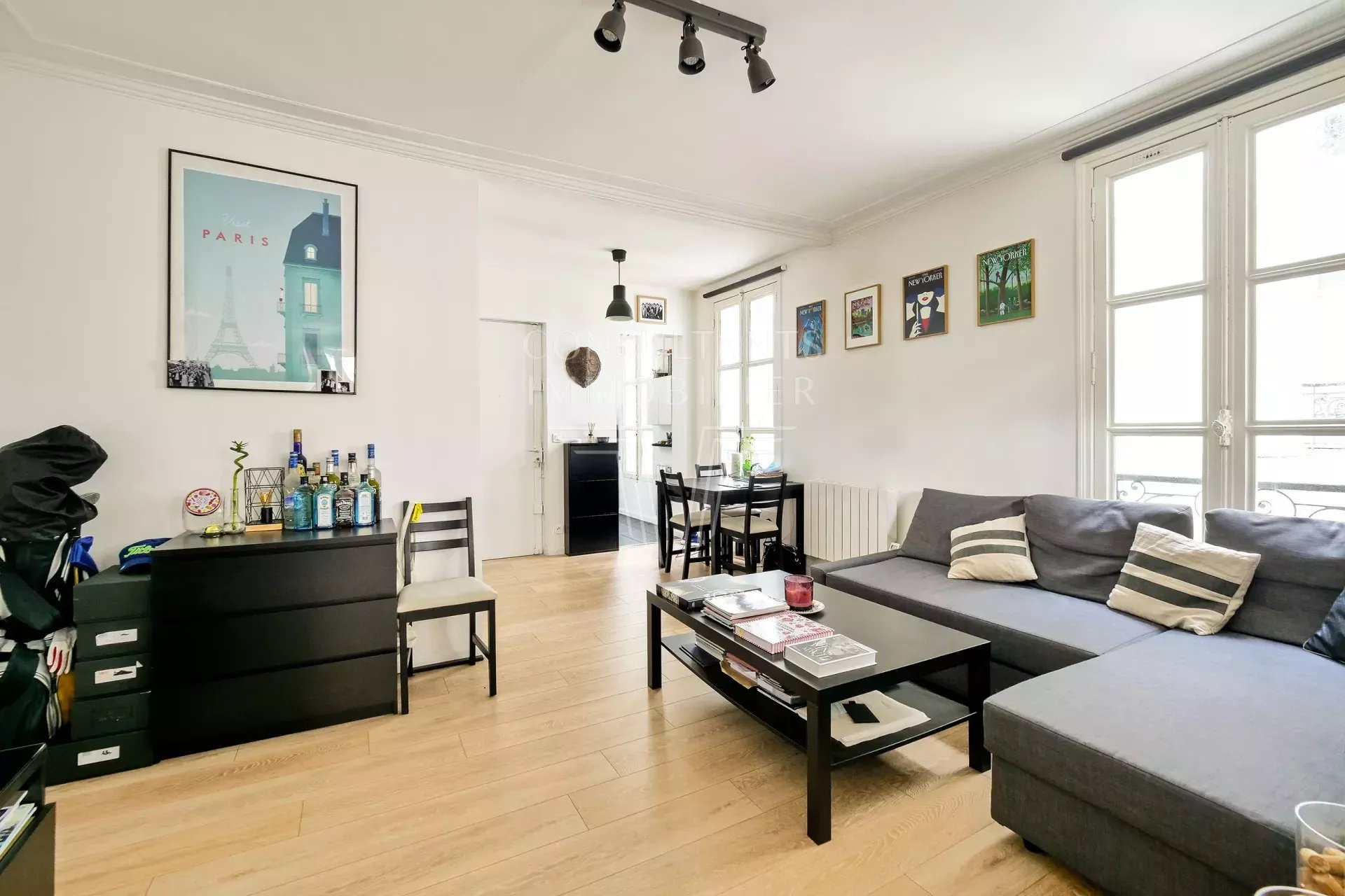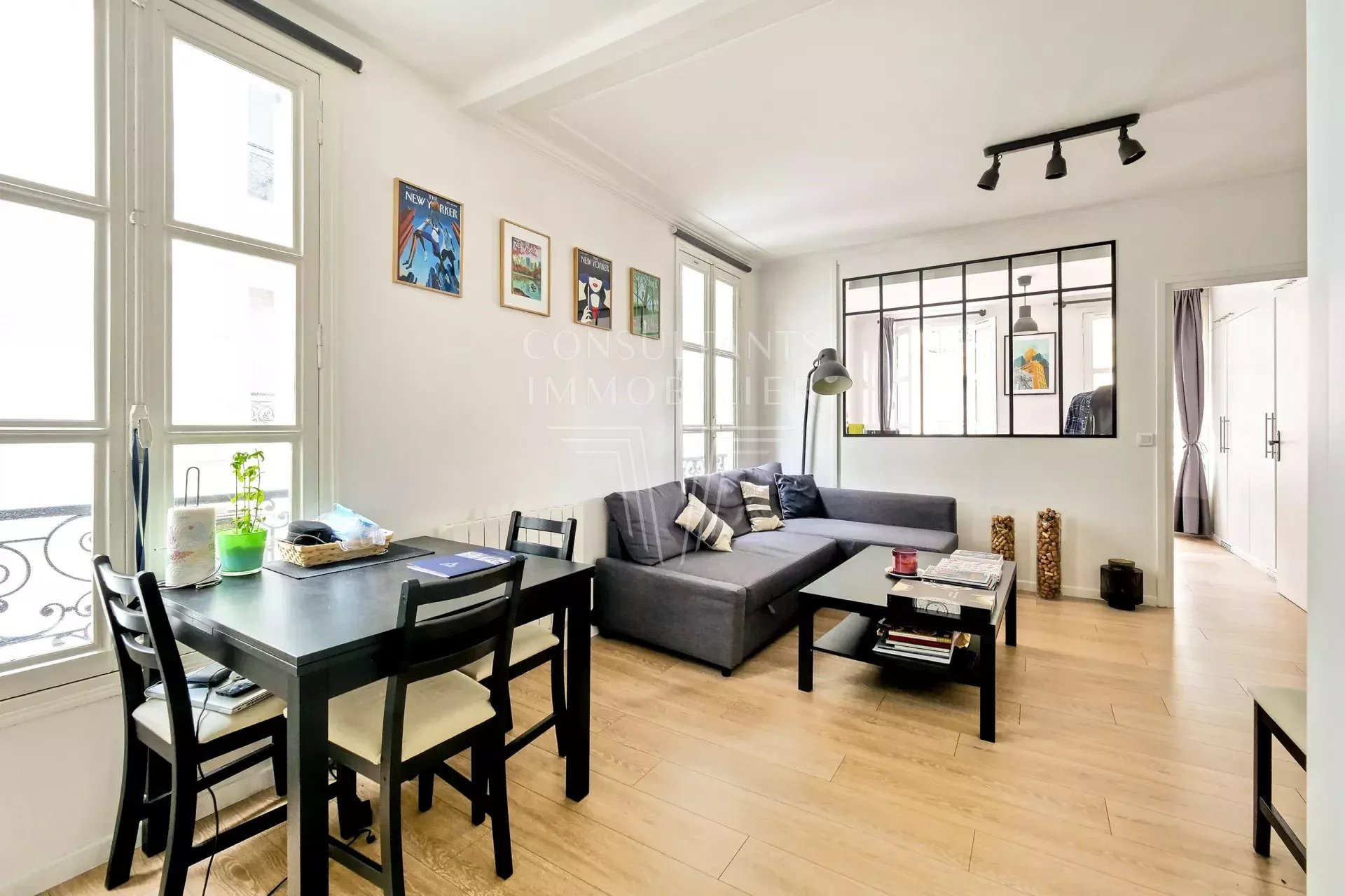 Au 3è étage sans ascenseur d'un immeuble ancien, joli deux pièces meublé de 41 m², très clair et calme. Il est composé d'un séjour, cuisine attenante aménagée, salle d'eau, chambre sur cour.