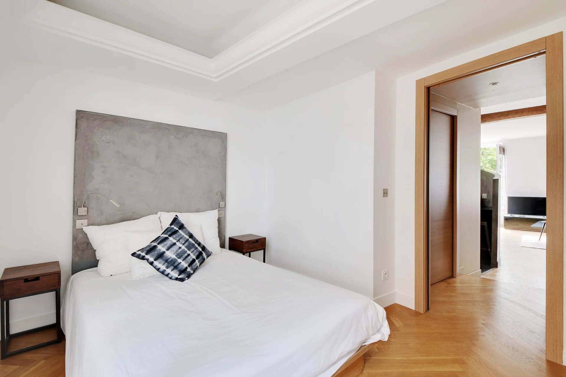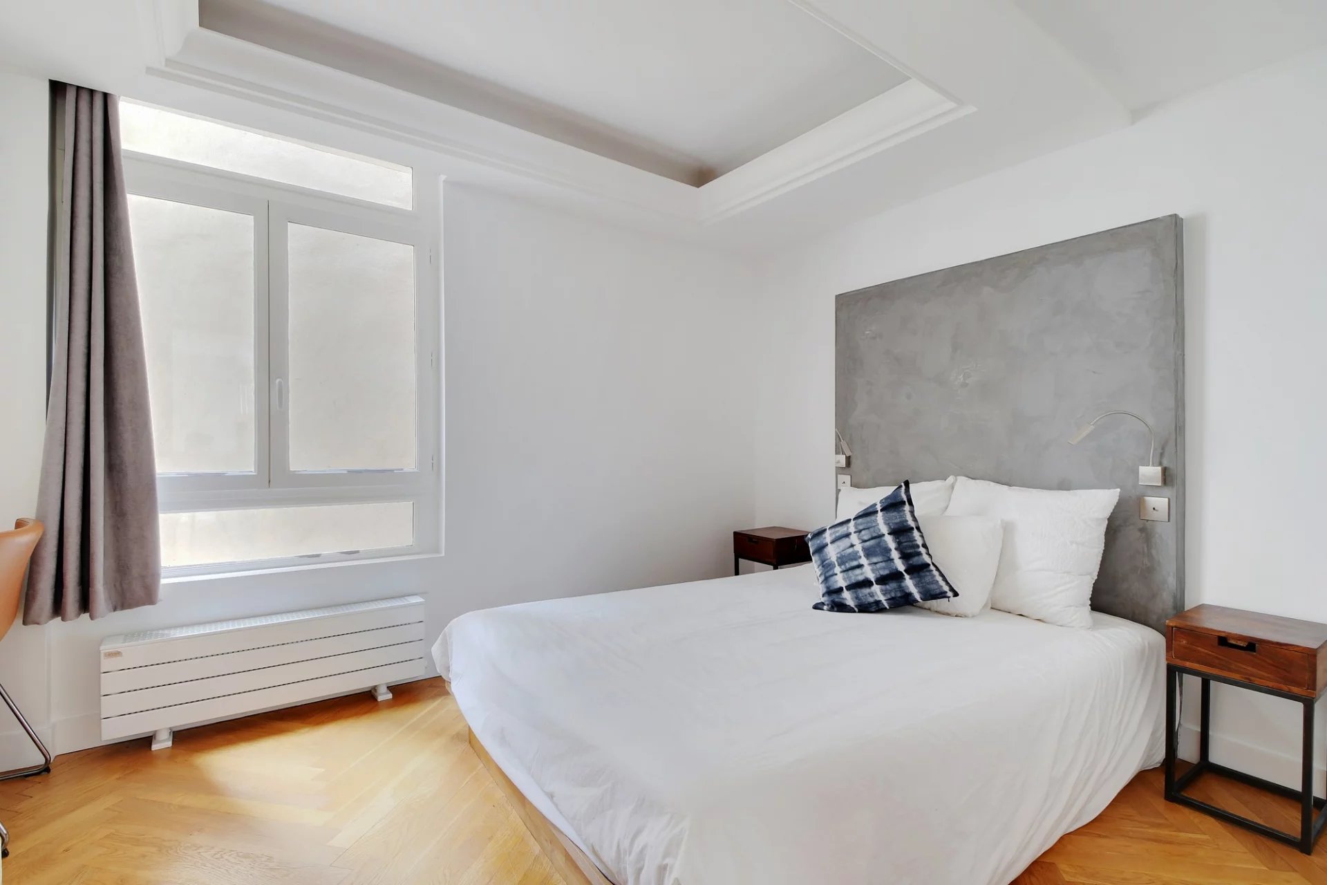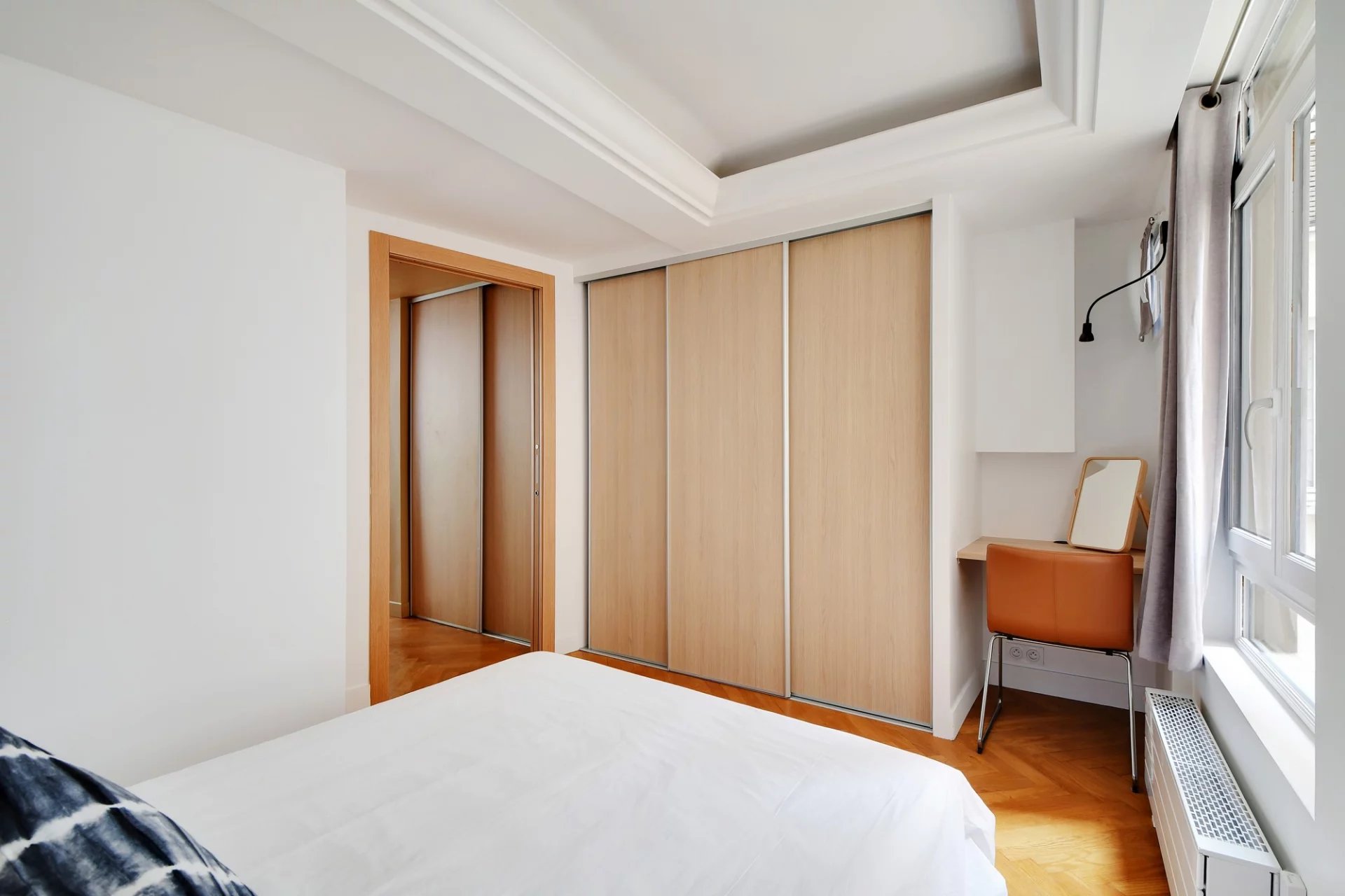 - une chambre sur cour avec lit double et plein de rangements