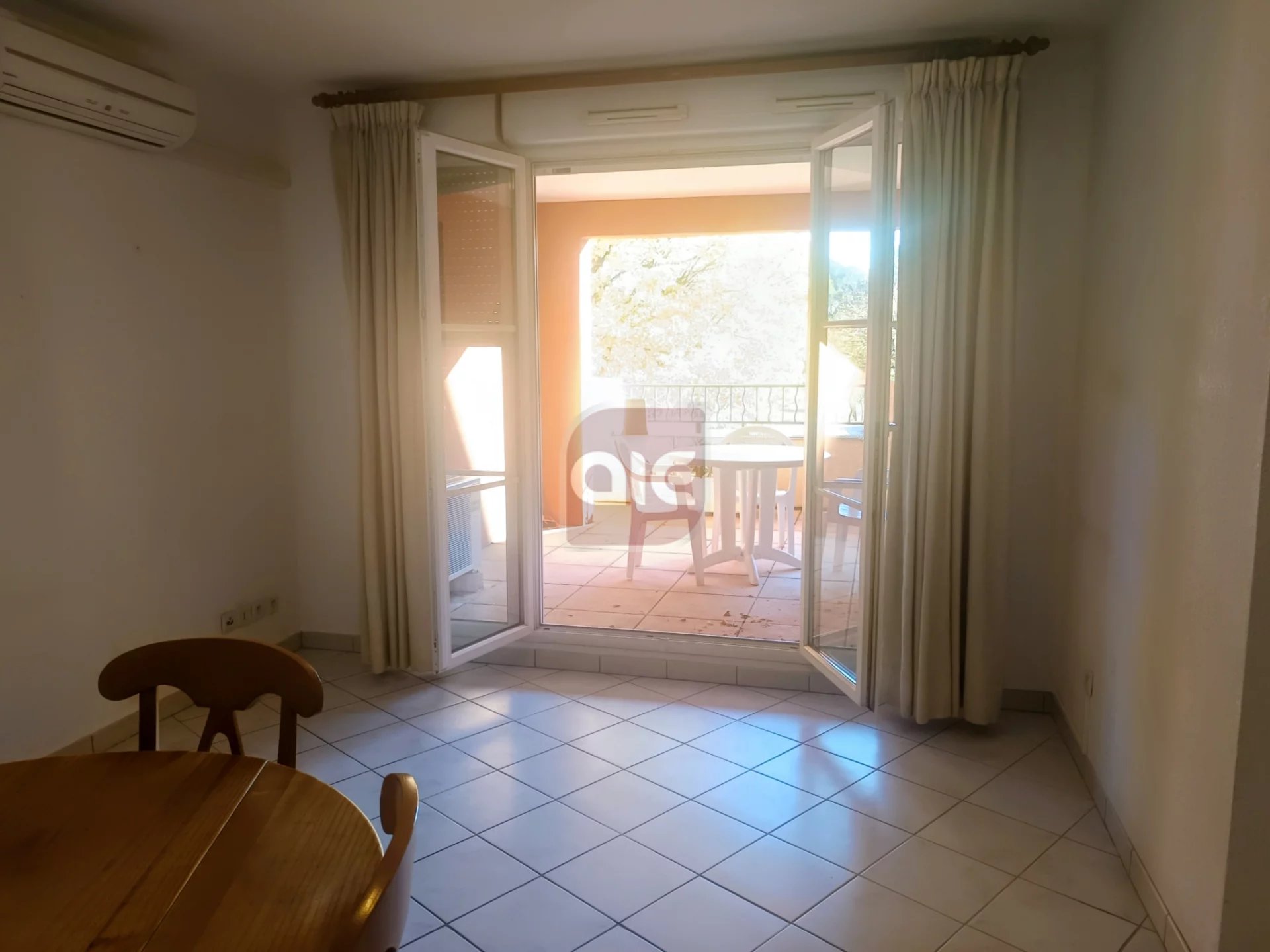 Une entrée avec placard, un séjour ouvrant sur une belle terrasse de 15 m2, une grande cuisine équipée aménagée, une chambre avec placard, une salle d'eau avec un WC séparé.