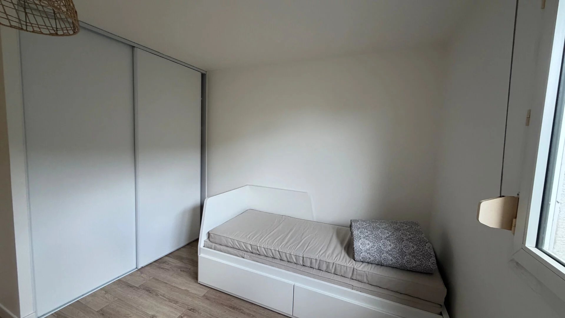 540 € / Mois (Charges comprises)Découvrez cet appartement spacieux de 70 m² situé à Talence, dans le secteur Forum. , A louer, 1 chambre avec lit double ('Gigogne') en colocation dans un appartement qui se compose de 4 pièces dont 3 chambres. Situé au rez-de-chaussée d'un immeuble de 3 étages, il bénéficie d'une exposition sud, garantissant une belle luminosité dans le séjour. La cuisine américaine est aménagée et équipée, parfaite pour vos repas en famille. Vous apprécierez également le calme de cet appartement, ainsi que le confort d'un chauffage électrique par radiateurs et d'un ballon électrique pour l'eau chaude. La salle de bain et les toilettes sont séparés pour plus de commodité. À seulement 5 minutes à pied des transports en commun (tramway et bus), et à proximité des écoles, cet appartement est idéalement situé. Les commerces se trouvent à 700 mètres, vous offrant un accès facile aux services quotidiens. L'immeuble, construit en 1997, est en bon état avec des fenêtres en PVC double vitrage et des volets roulants. De plus, vous pourrez profiter de la fibre optique pour vos connexions internet. Ne manquez pas cette opportunité, contactez l'agence ERA VICTOR LOUIS IMMOBILIER pour plus d'informations et pour organiser une visite.