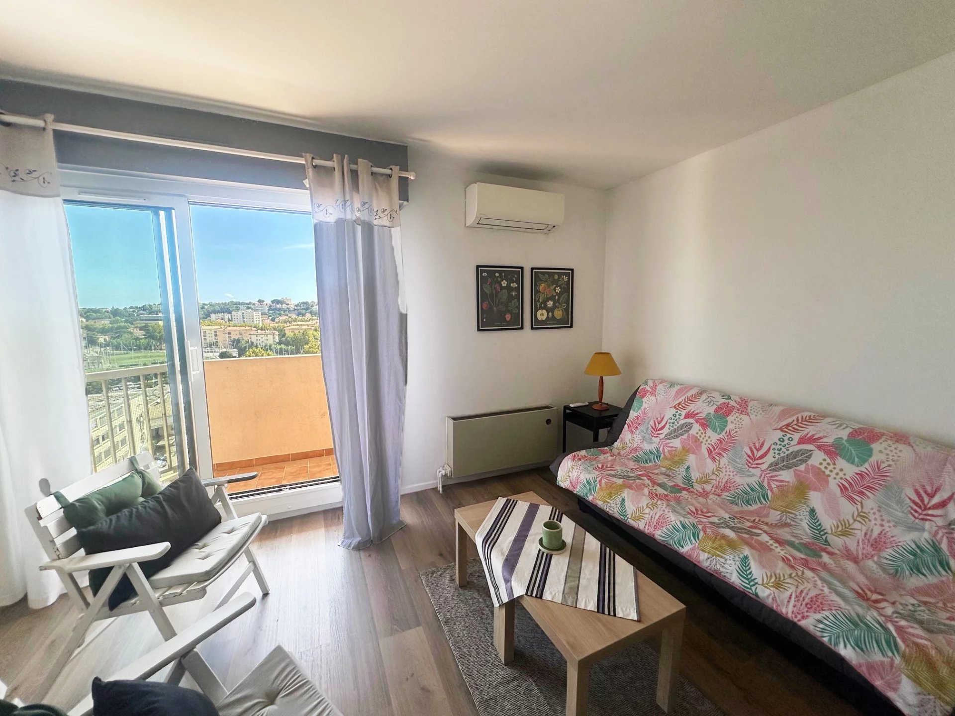 620 € / Mois (Charges comprises)Proche Mourillon - Aperçu mer - Magnifique T1 MEUBLÉ, entièrement rénové de 30m2 à louer avec place de parking privative, cave et balcon, vue dégagée sans vis-à-vis - et comprenant ; une entrée avec placard, une cuisine rénovée, une pièce de vie ouvrant sur balcon, une salle d'eau entièrement rénovée avec son WC - place de parking privative en sous-sol - Climatisation - Cave - Loyer 600 EUR + 50 EUR de charges (Eau froide, ascenseur et communs)