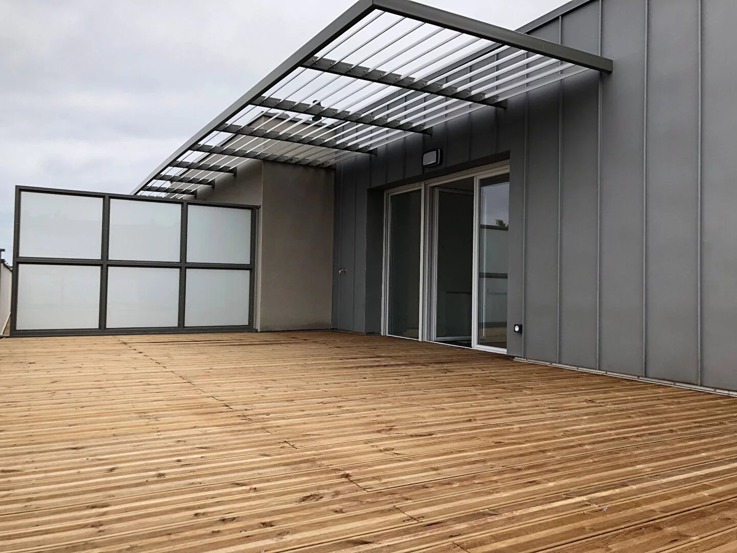 Superbe terrasse 43 m² exposée plein sud sans vis à vis. Grand séjour 41 m², cuisine US aménagée et équipée.