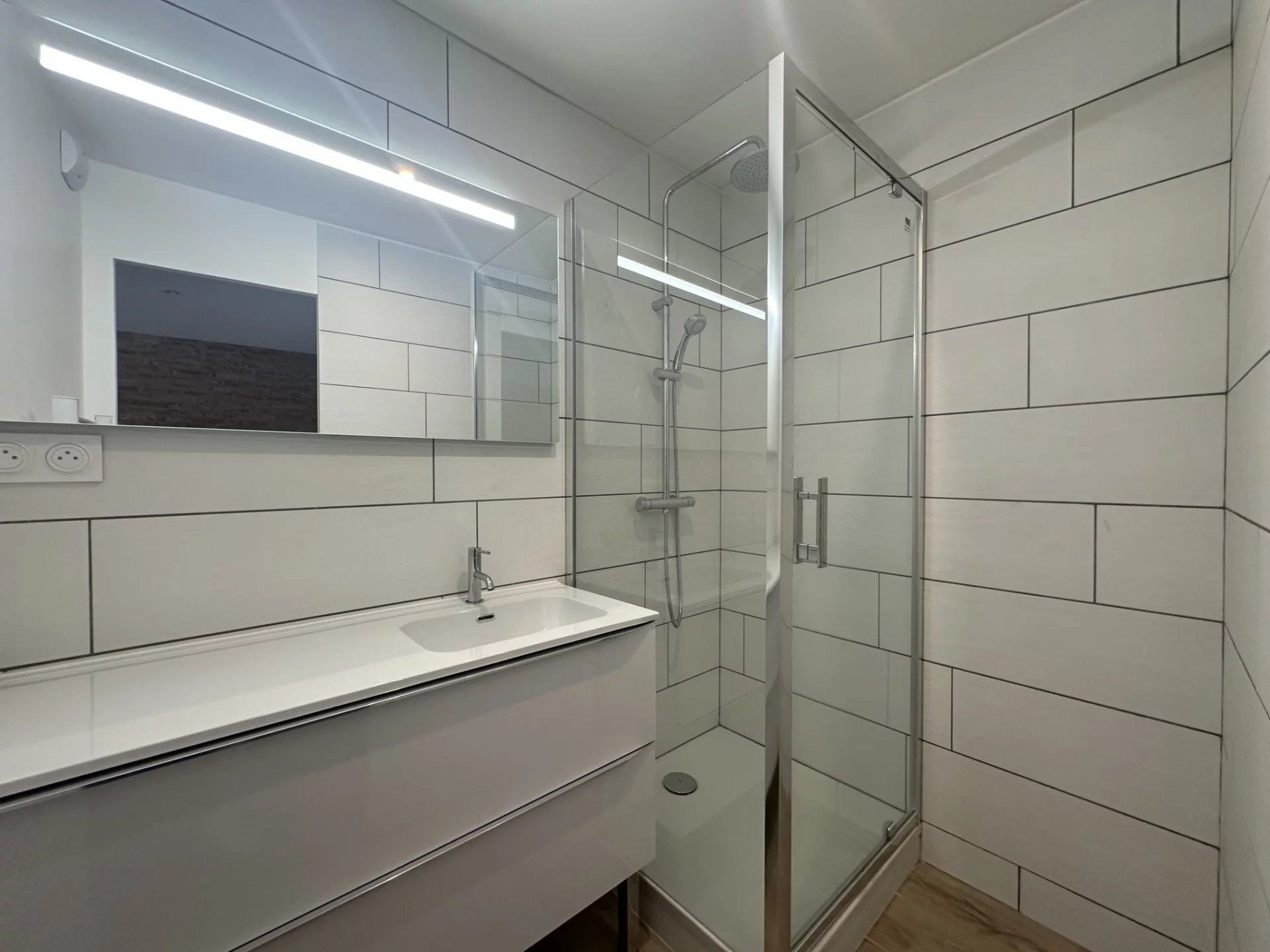 Vous trouverez un grand séjour de 27m2 avec tomette au sol et cheminée apparente, une cuisine américiaine entièrement aménagée et équipée, une grand chambre avec espace bureau et vastes rangements, un espace buanderie comprenant notamment lave-linge et sèche linge, une belle salle d'eau entièrement faïencée avec douche à l'italienne, de nombreux espaces de rangement.