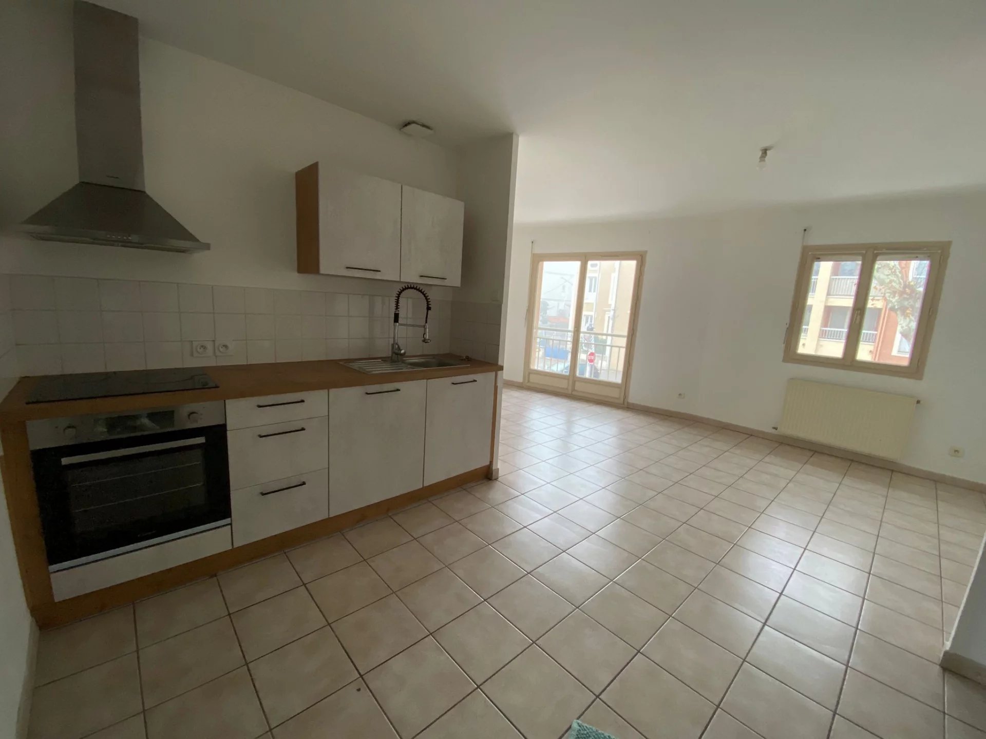 Un appartement de Type 3 comprenant une cuisine meublée et équipée, deux chambres, un salon, une salle d'eau et un wc