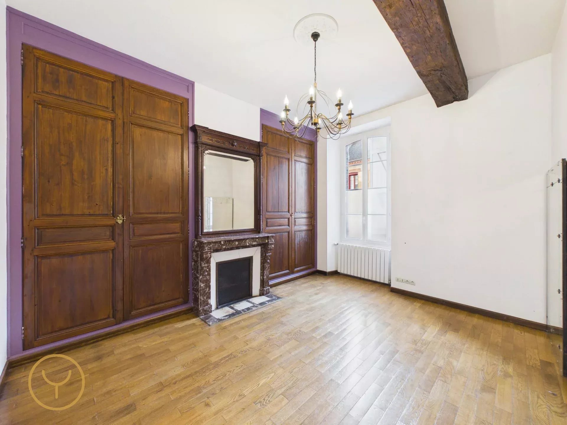 Rangements intégrés : De grands placards en bois d'origine apportent une solution de stockage élégante et pratique.