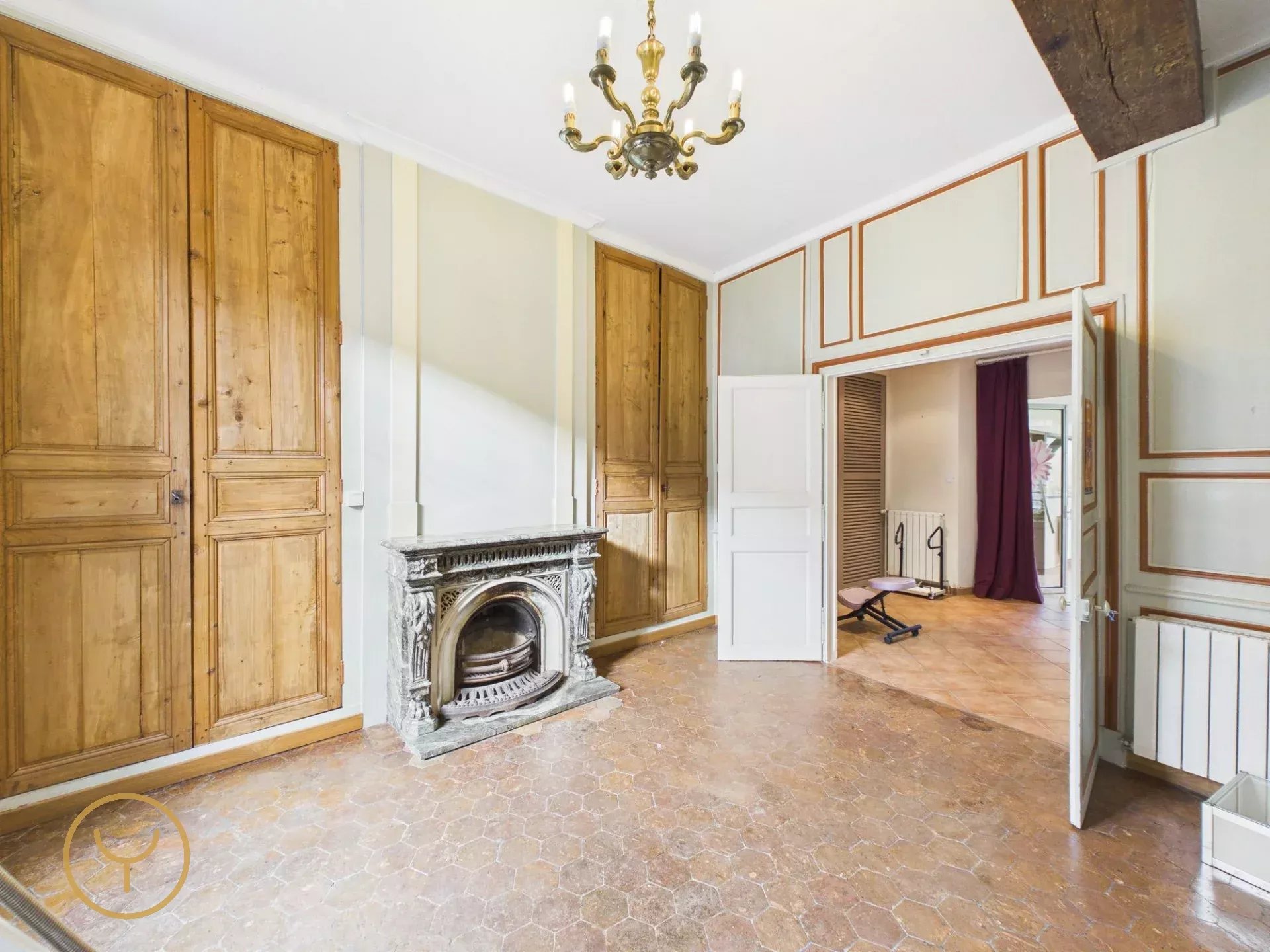 Matériaux nobles : Sols en tomettes authentiques, parquets massifs et cheminées à l'ancienne.
