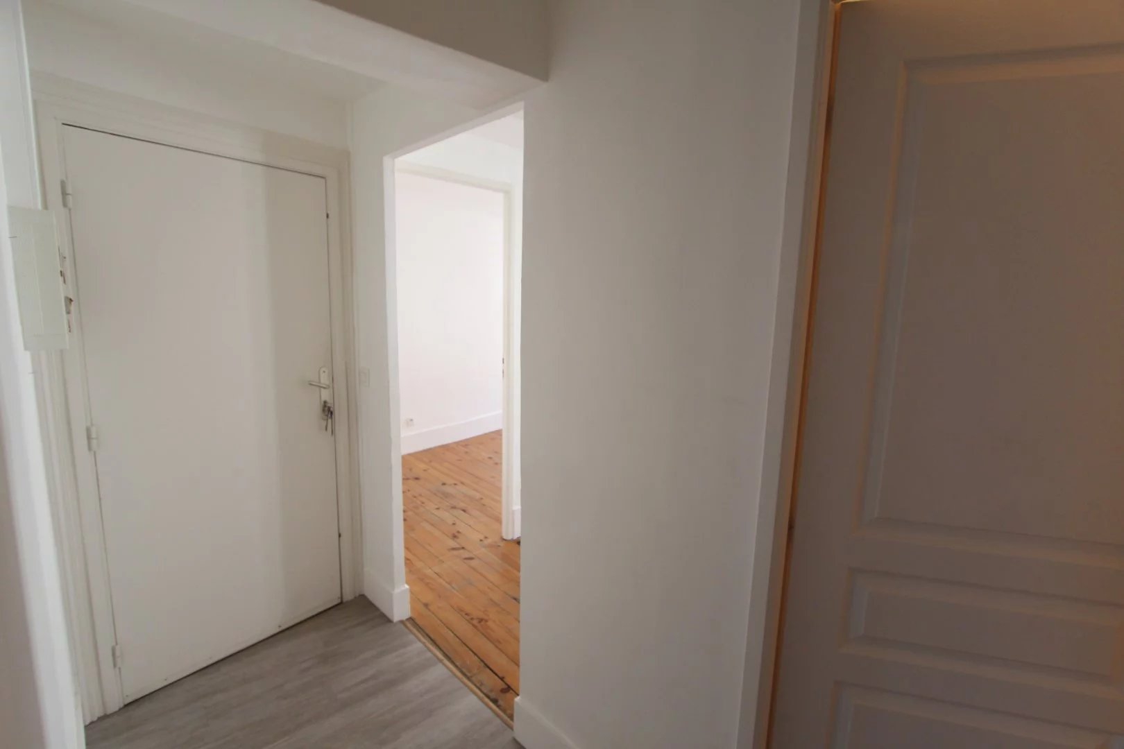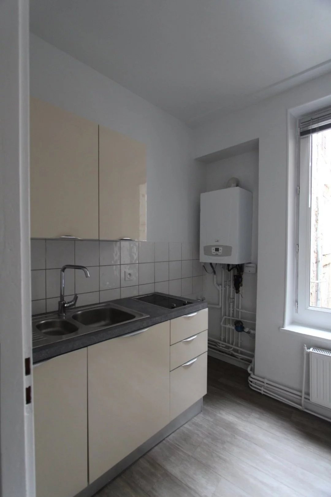VOIRON Hyper centre, au 2ème étage sans ascenseur d'un petit immeuble, juste derrière l'église, à louer ce joli T2 composé d'une cuisine, partiellement équipée (plaques de cuisson, éléments hauts et bas), un séjour, une chambre, une salle de bains avec baignoire et wc séparé. Appartement traversant, avec fenêtres double vitrage, chauffage indifivuel au gaz. Les peintures ont été refaites en 2021. Sols parquet. Permis de louer OK Libre de suite.