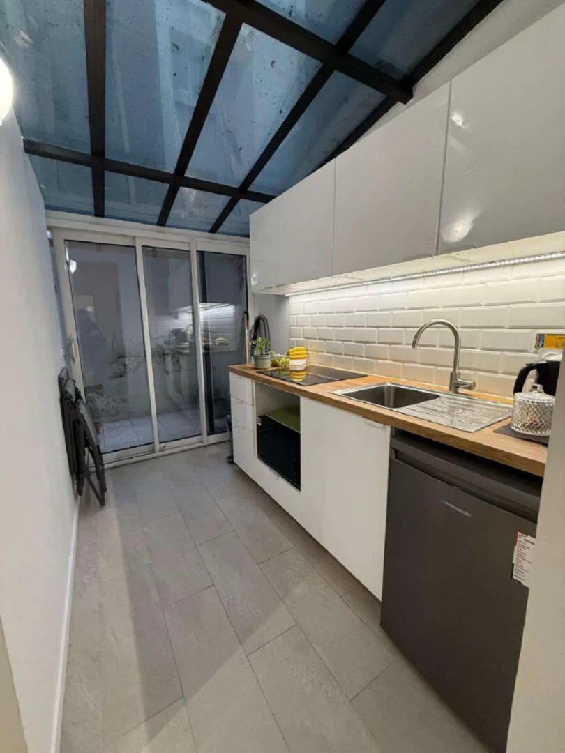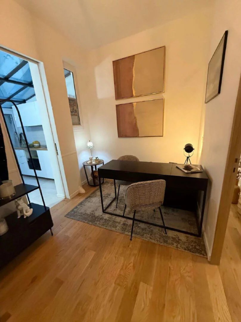 Paris 17ème, métro Pereire dans bel immeuble Appartement en parfait Etat, situé en rez-de-chaussée donnant sur cour, comprenant : une entrée pouvant servir d'accueil, une salle d'attente, un bureau attenant à la salle d'eau avec WC, une cuisine aménagée et équipée de plaques induction, une verrière et un espace extérieur.
