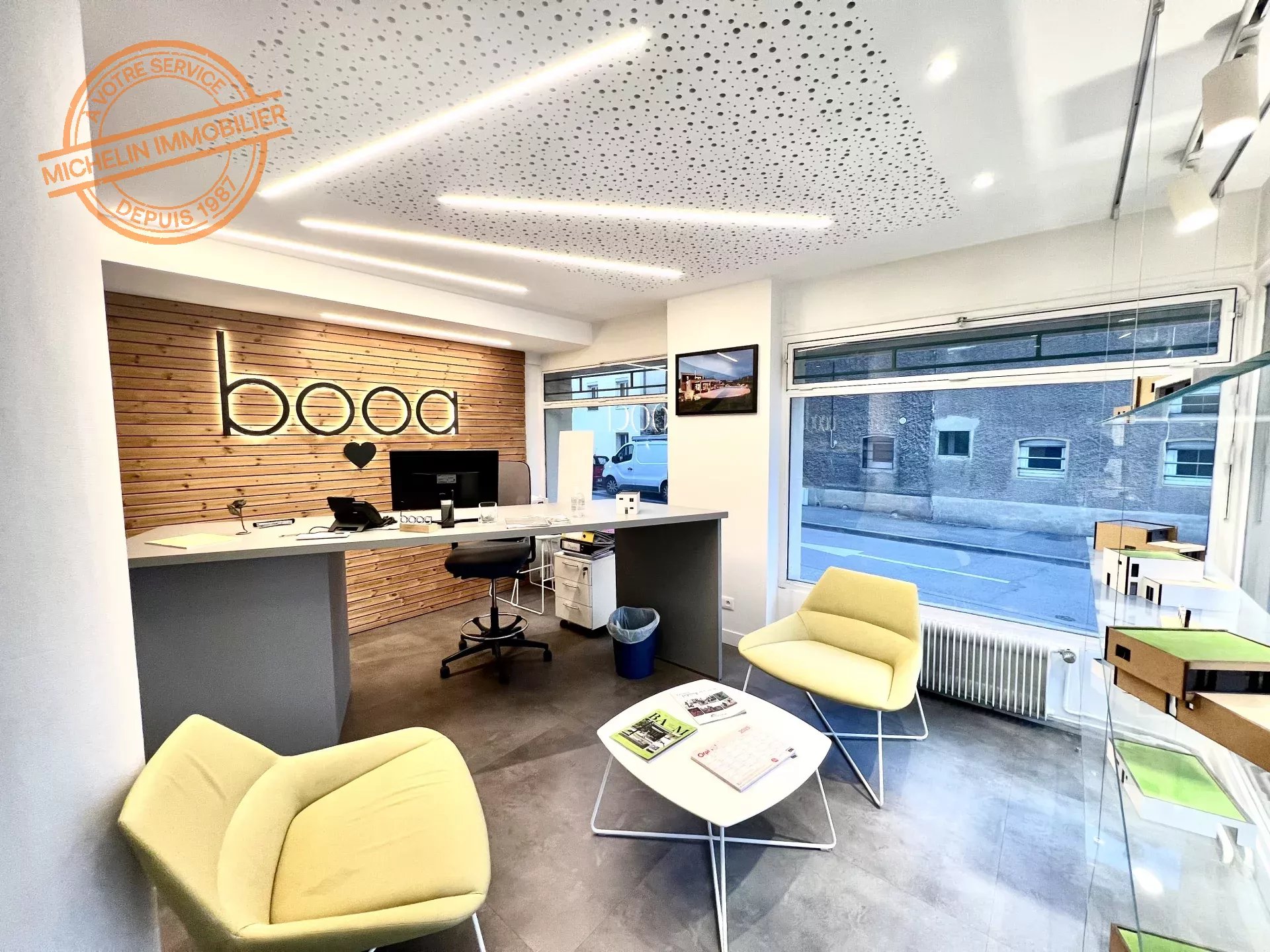 D'une superficie d'environ 95 m2, il dispose d'un grand espace de réception, aujourd'hui segmenté en bureau et accueil, il pourra être modulé selon les besoins de chacun.