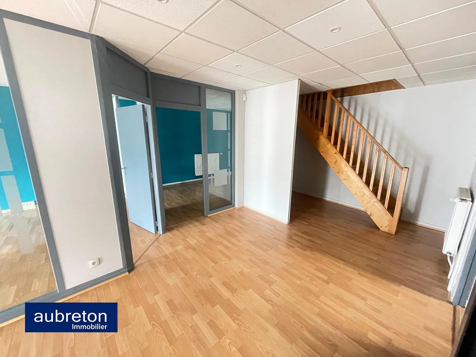 Au 1er étage, un espace de stockage et deux bureaux.