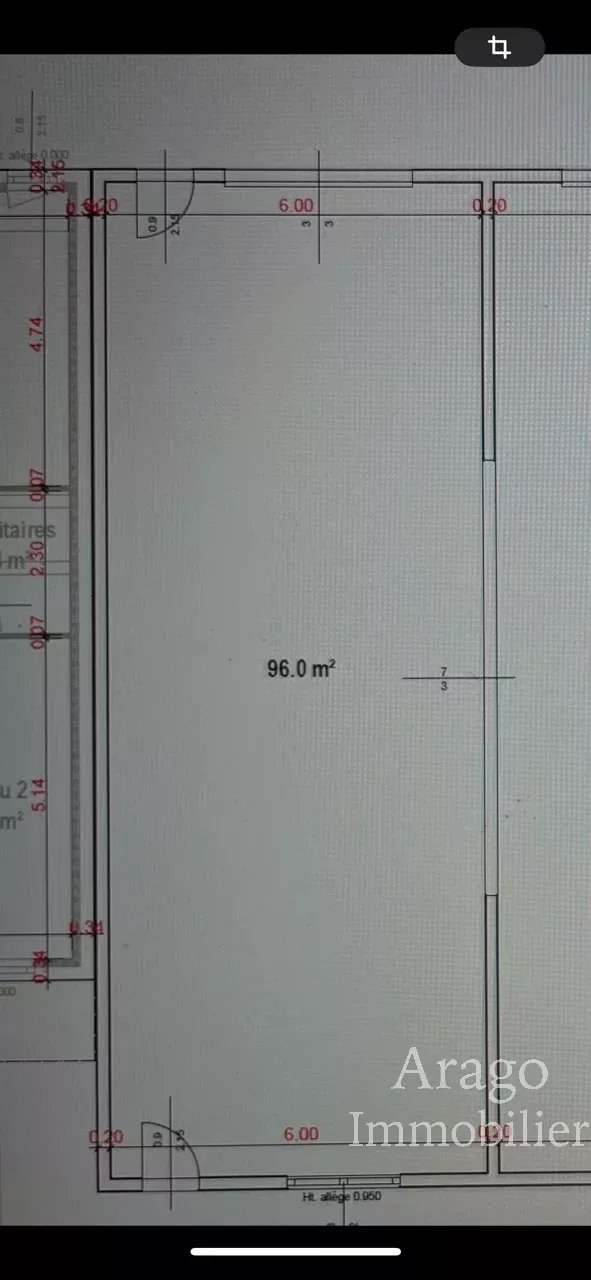 Entrepôt : 96 m² au rez-de-chaussée, équipé d’une porte électrique type volet roulant, pratique et sécurisée pour le chargement/déchargement.
